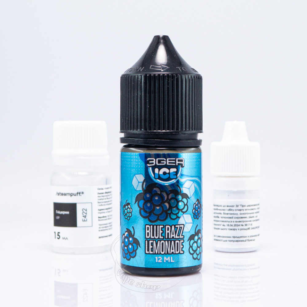 3Ger Salt Blue Razz Lemonade 30ml 50mg - це набір рідини з кисло-солодким смаком лимонаду з блакитної малини.
