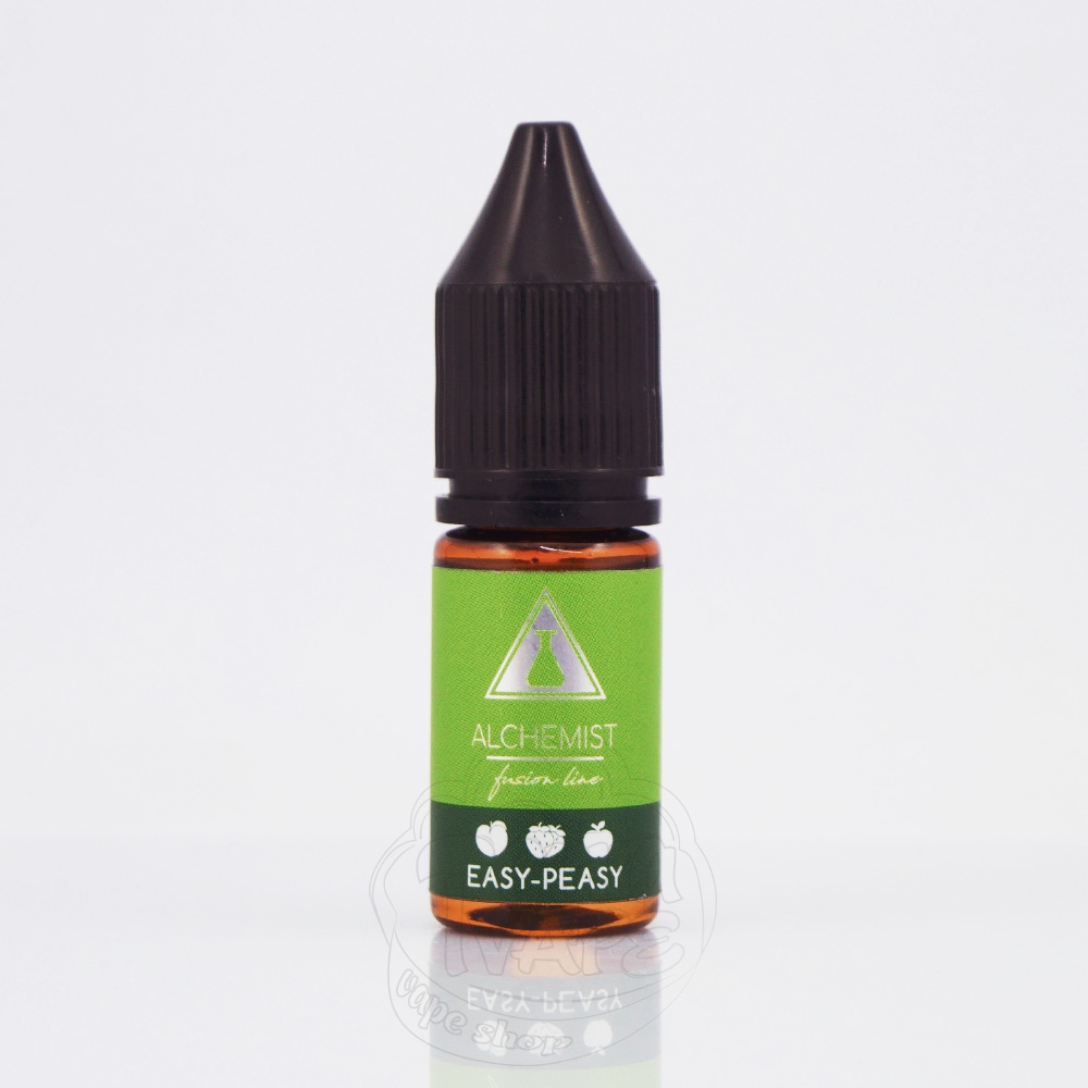 Alchemist Fusion Line Salt Easy-Peasy 10ml 35mg - це рідина на сольовому нікотині з фруктовим смаком яскравого поєднання зеленого яблука з полуницею і соковитим персиком.
