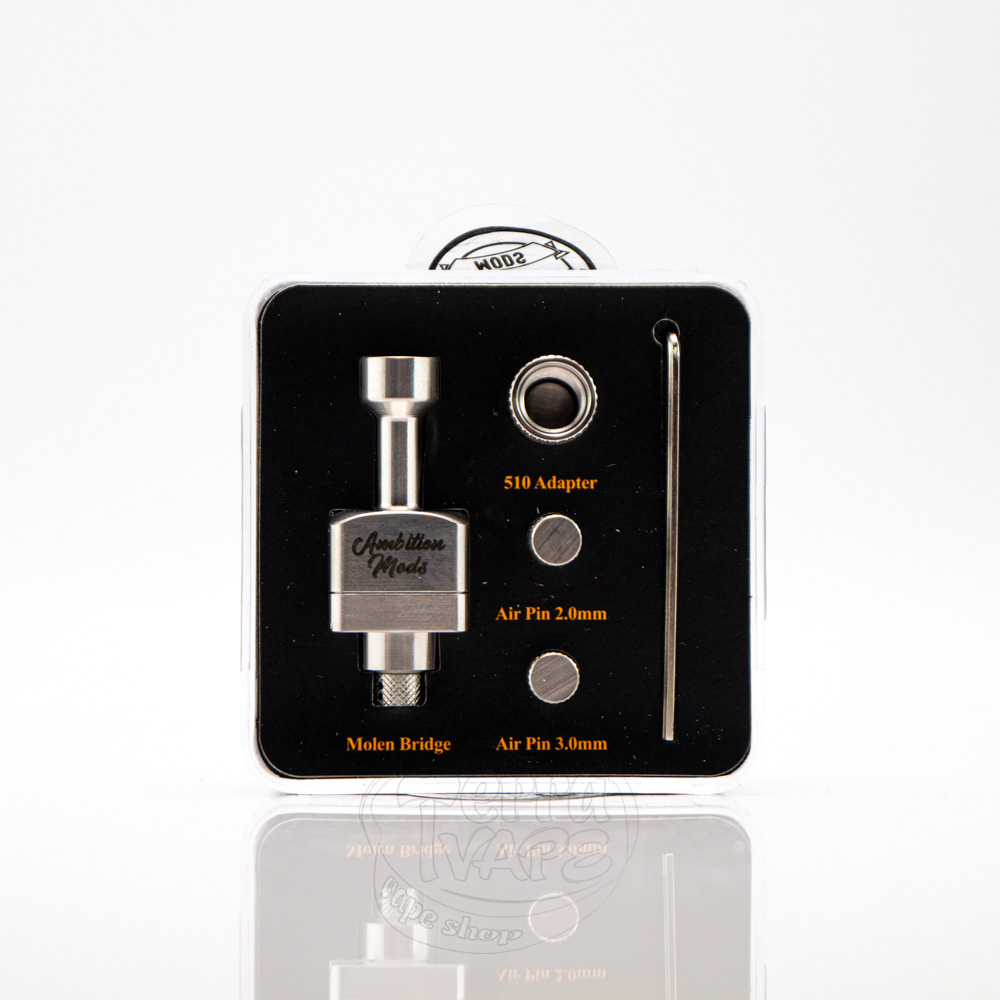 Ambition Mods Molen RBA (Boro Bridge) - це бридж, що обслуговується, від компанії Ambition Mods для пристроїв формату боро. Оснащений двостійковою декою і змінними пінами обдування. Досить легкий в обслуговуванні, тому підійде як для новачків, так і для досвідчених вейперів.