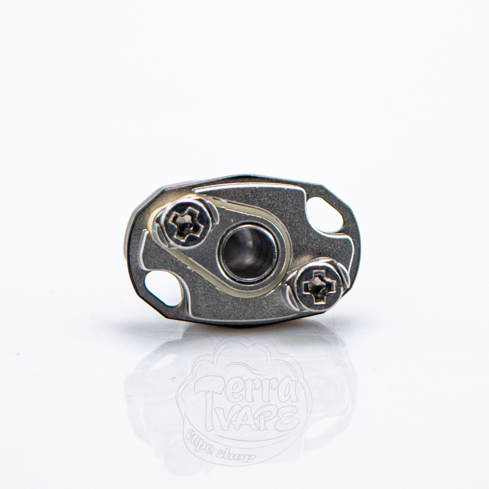 База має овальну форму зі скошеними кутами. По діагоналі розташовані два гвинти, які призначені для фіксації спіралі. Поруч з ними з кожного боку знаходяться доволі невеликі овальні отвори, які забезпечуватимуть подачу рідини на вату. Оскільки дека не має стойок, вам не доведеться попередньо вимірювати довжину ніжок спіралі, що трохи пришвидшує та спрощує процес намотки. Обслуговування Strix RBA виконується дуже швидко та просто: