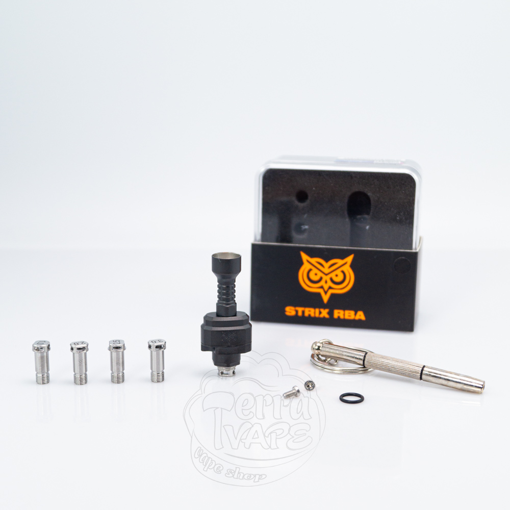 Ambition Mods Strix RBA (Boro Bridge) - це обслуговуваний бридж, розроблений компанією Ambition Mods у співпраці з Kilic Customs. Strix RBA підходить для більшості боро-баків, які працюють з пристроями формату все-в-одному. Дека без стойок розміщує одну спіраль та нескладна в обслуговуванні, а обдув регулюється за допомогою змінних жиклерів різного діаметру.
