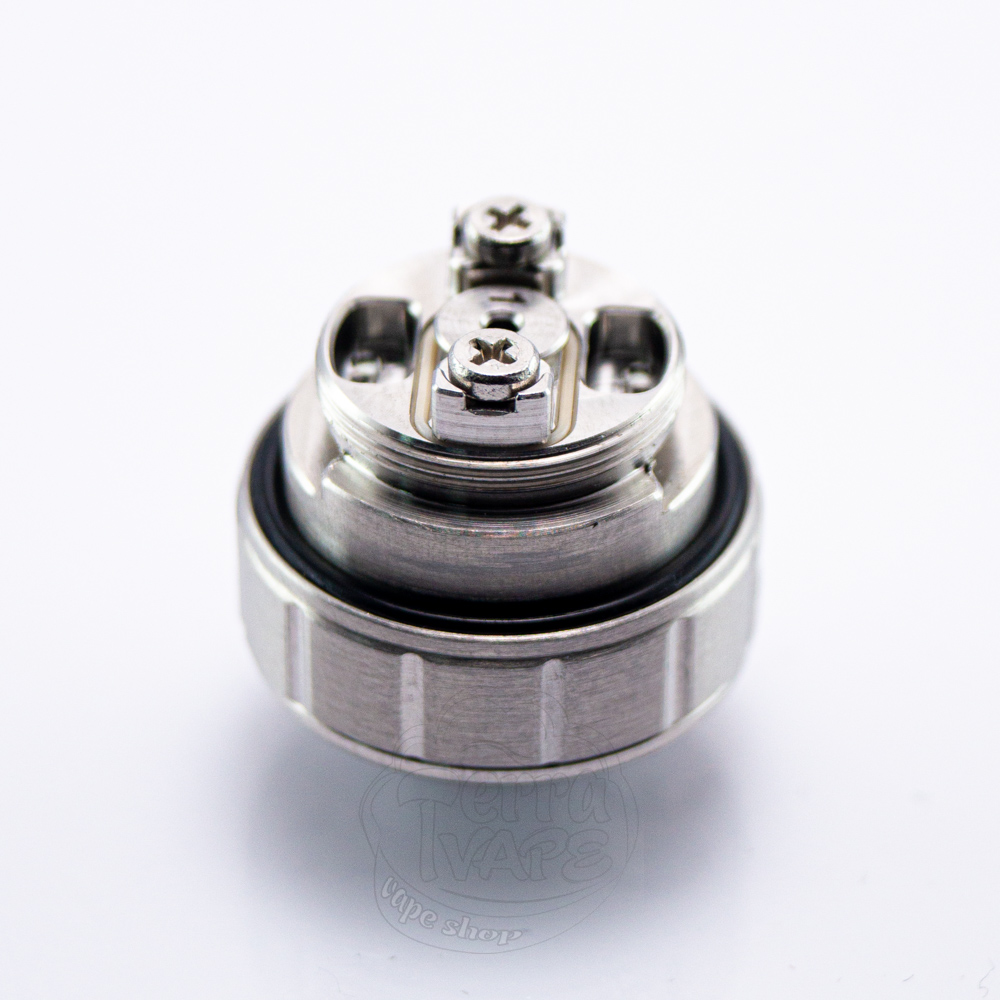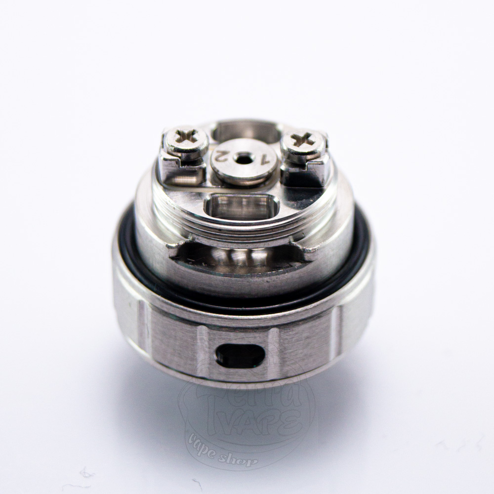 Щоб отримати доступ до деки, вам потрібно лише відкрутити нижню частину бака. По центру ви побачите два гвинти, розміщені один навпроти одного. Між ними знаходиться пін, який відповідає за тугість затягування. З протилежного боку розташовані дві невеликі ванночки з отворами, які призначені для укладання вати. Власе, це і все, що ви зможете побачити на базі, адже вона має мінімум елементів та багато простору завдяки відкритій будові. Це означає, що ви можете з легкістю обслуговувати Trinity MTL RTA навіть якщо ви новачок. Якщо вам потрібна допомога з намоткою, то ви можете переглянути рекомендовані кроки, які будуть додані нижче.