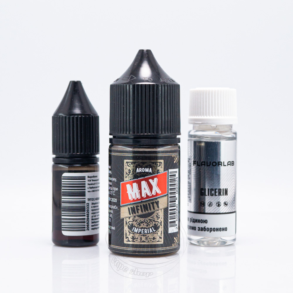 Набір Aroma Max Infinity Salt 30ml - це набір для самостійного приготування сольової рідини для електронних сигарет від українського виробництва. Жижка Арома Макс Інфініті ідеально підходить для використання з багаторазовими pod системами, а також малопотужними вейп-пристроями, оскільки співвідношення гліцерину до пропілену дорівнює 50/50. Вата всередині нагрівальних елементів таких електронок встигає добре просочуватися завдяки оптимальній густоті.