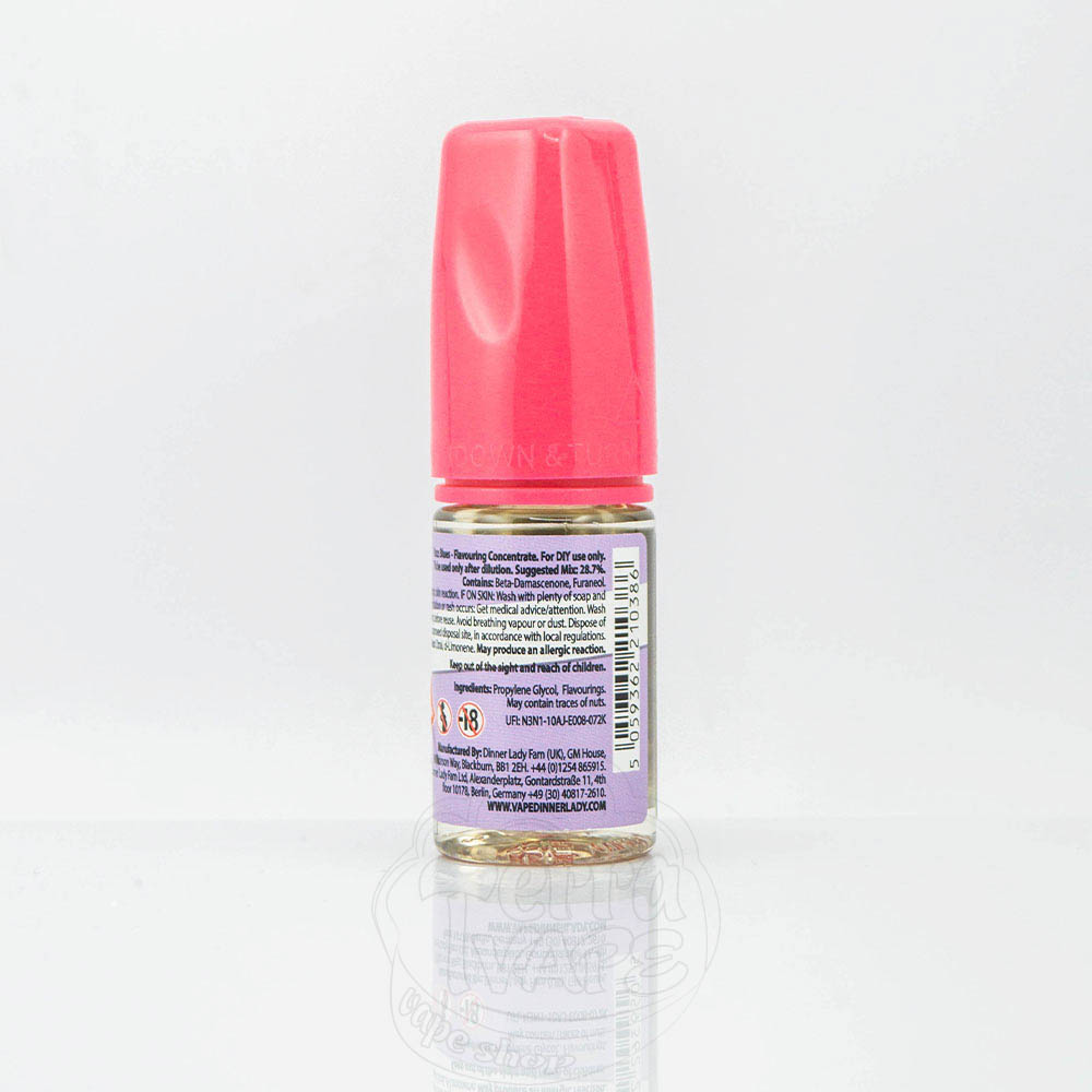 Эти концентраты выпускаются в объеме 30мл и изготавливаются из 100% PG, тонкой жидкости без запаха, которая отлично подходит для хранения ароматизаторов и придания первоклассного вкуса жидкости DIY. Создавая жижу, полностью основанную на PG, Dinner Lady предлагает высококонцентрированные ароматы, которые пользователь может смешивать с желаемым количеством VG (для облакообразного пара) и никотина.