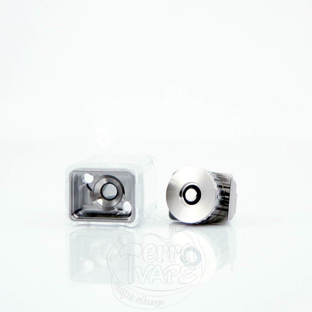 З коробки в атомайзері попередньо встановлено пін з діаметром внутрішнього отвору 3.8 мм. Таке значення добре підійде для більших спіралей і напіввільної затяжки (RDL).