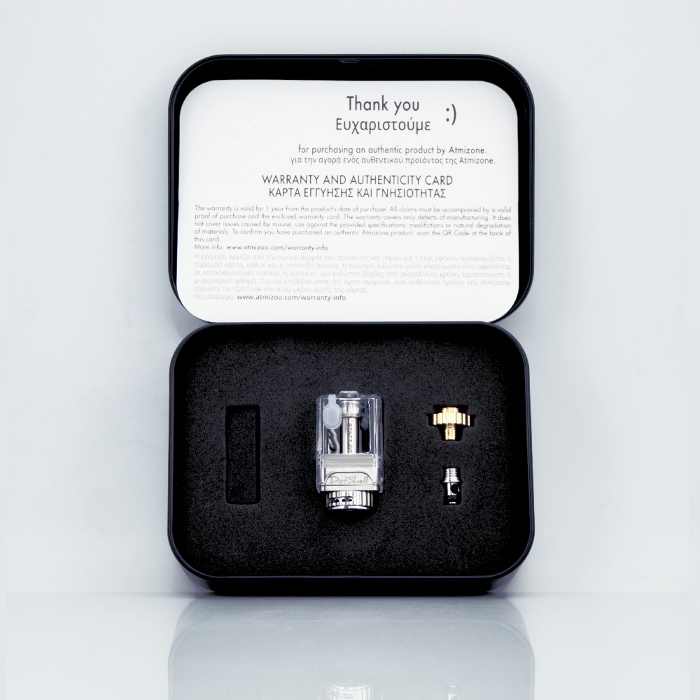 Atmizoo dotShell RBA - це преміальна обслуговувана база від грецького виробника Atmizoo, розроблена спеціально для dotMod dotAIO. Призначена для встановлення однієї спіралі. Передбачена можливість регулювання обдування і тугості затяжки. Обсяг резервуара становить приблизно 3 мл. Добре передає смак і, що найважливіше, удар по горлу, оскільки цей пристрій призначений для справжнього досвіду сигаретної затяжки!
