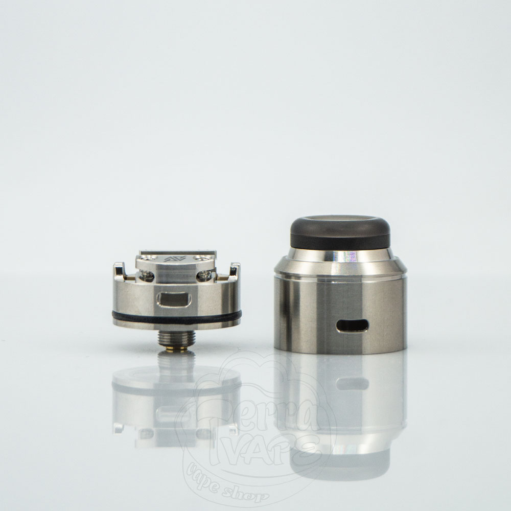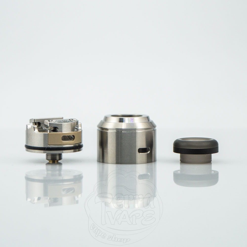 Augvape Alexa S24 RDA - це односпіральна дріпка, розроблена компанією AUGVAPE у співпраці з Inhale. Діаметр бази складає 24мм, завдяки чому атомайзер виглядає цілком мініатюрним. Сама дека простора та передбачає нескладне обслуговування. 810 дріп-тип легко перетворюється у 510, якщо використати адаптер, який входить до комплектації набору.