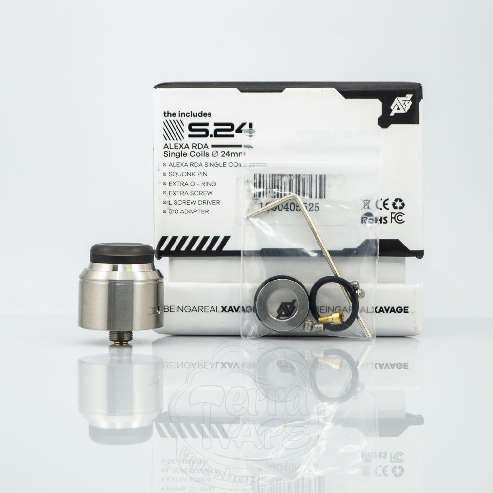 Alexa S24 RDA найбільш оптимальна для використання з простими конструкціями на одній спіралі, призначеними для отримання щільної смачної пари. При цьому кільцева система регулювання обдуву буде покращувати смак та підлаштовувати тугість затяжки під ваші потреби.