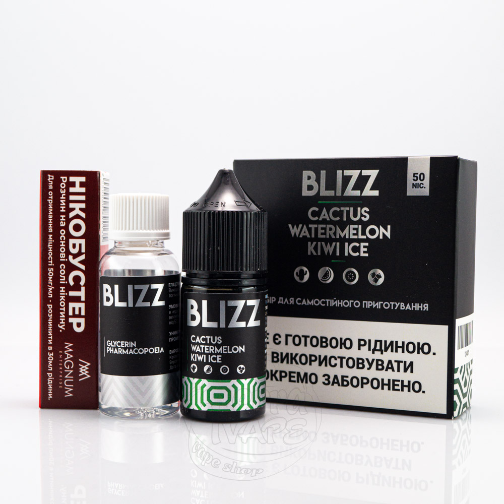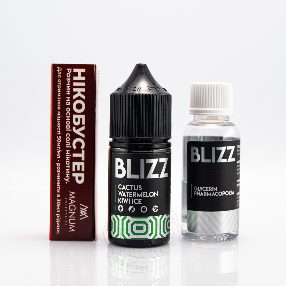Blizz Salt Cactus Watermelon Kiwi Ice 30ml 25mg - набір сольової рідини зі смаком нестандартного холодного поєднання смаку кактуса з кавуном і ківі.