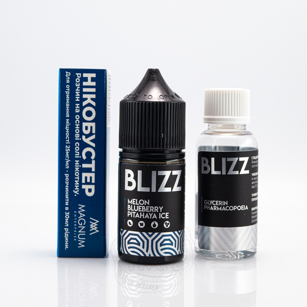 Blizz Salt Melon Blueberry Pytahaya Ice 30ml 25mg - набір сольової рідини зі смаком незвичного міксу дині, чорниці та пітагайї, який підірве ваші смакові рецептори.