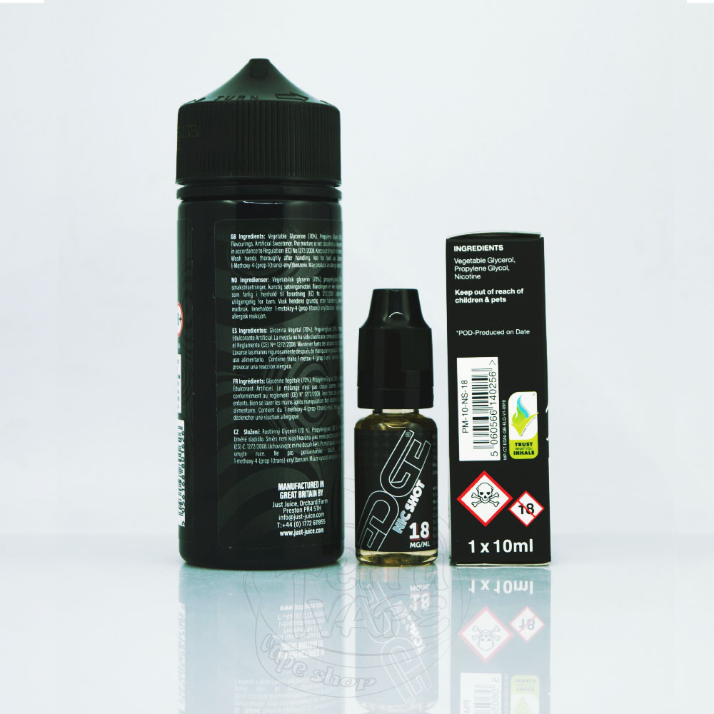- 1.5мг/мл - разом з баночкою рідини ви також купуєте 1 нікобустер, який потрібно додати в тару і добре потрусити (приблизно 2-5 хвилин), щоб всі компоненти однорідно перемішалися. Фінальний обсяг - 110ml.