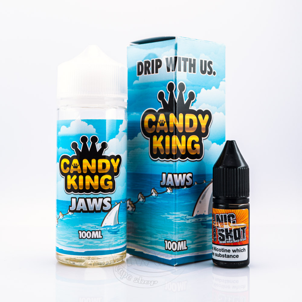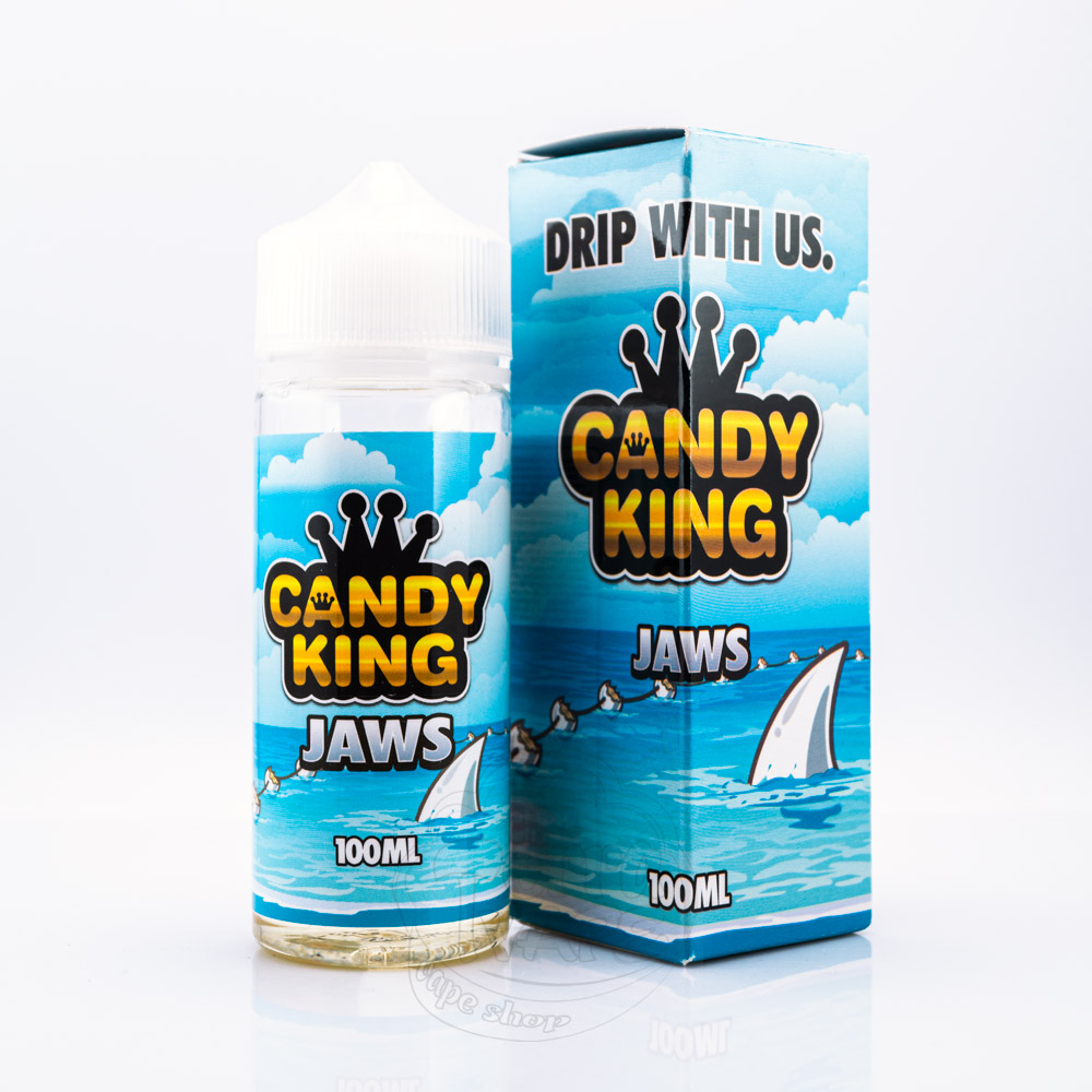 Candy King Organic Jaws 100ml 0mg - це рідина на органічному нікотині у форматі шортфіла з чудовим смаком жувальних цукерок у формі акули з люто солодким і терпким смаком блакитної малини у поєднанні з солодким ванільним кремом та оксамитовим післясмаком.