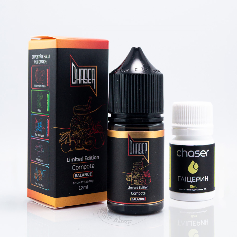 Chaser Black Ultra Salt Compote 30ml 65mg - набір для приготування рідини зі смаком домашнього компоту з абрикоса, вишні та полуниці.
