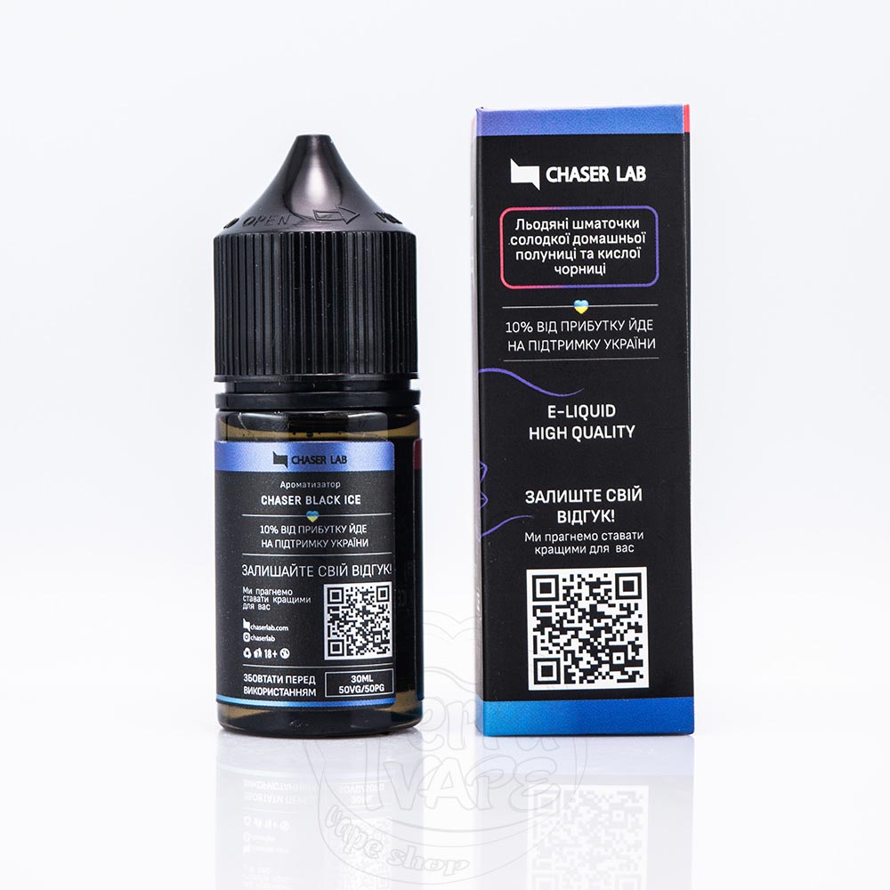 Chaser Black New ICE Salt 30ml – це оновлена колекція рідин з холодком на основі сольового нікотину від відомого українського виробника Chaser. Ця жижа доступна в об'ємі 30 мл і має два рівні міцності: