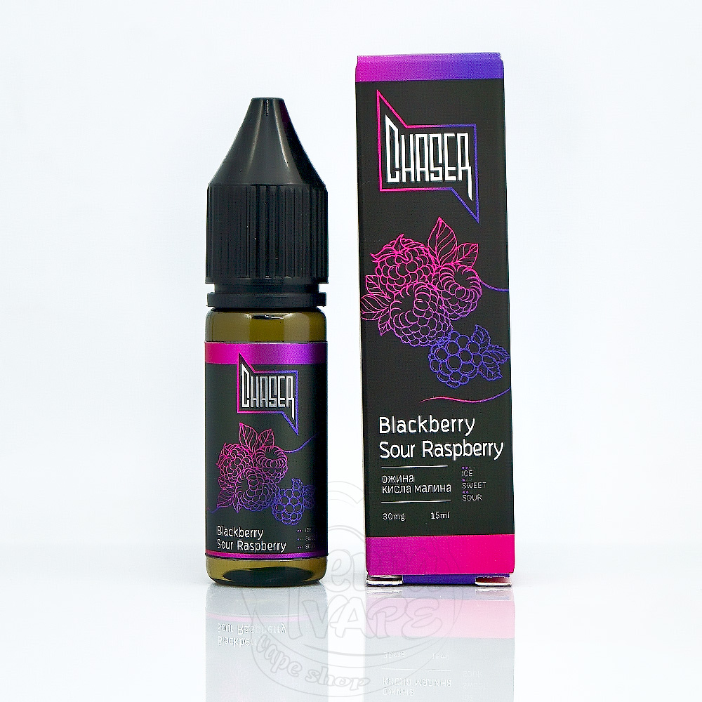 Chaser Black Salt New Blackberry Sour Raspberry 15ml 30mg - рідина для електронних сигарет на сольовому нікотині з ягідним смаком стиглої ожини та кислої малини.