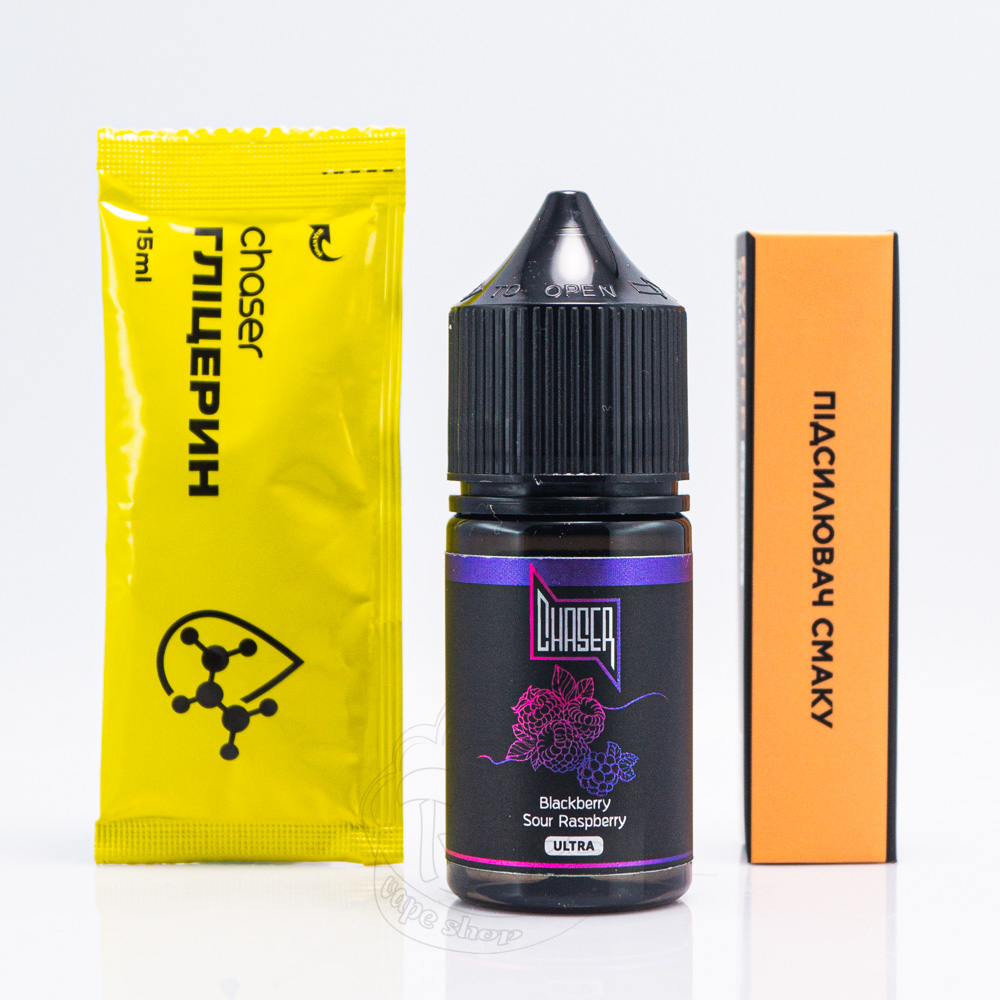 Chaser Black Ultra Salt Blackberry Sour Raspberry 30ml 65mg - сольова рідина для pod-систем з яскравим смаком стиглої ожини, ідеально збалансованої нотками кислої малини.
