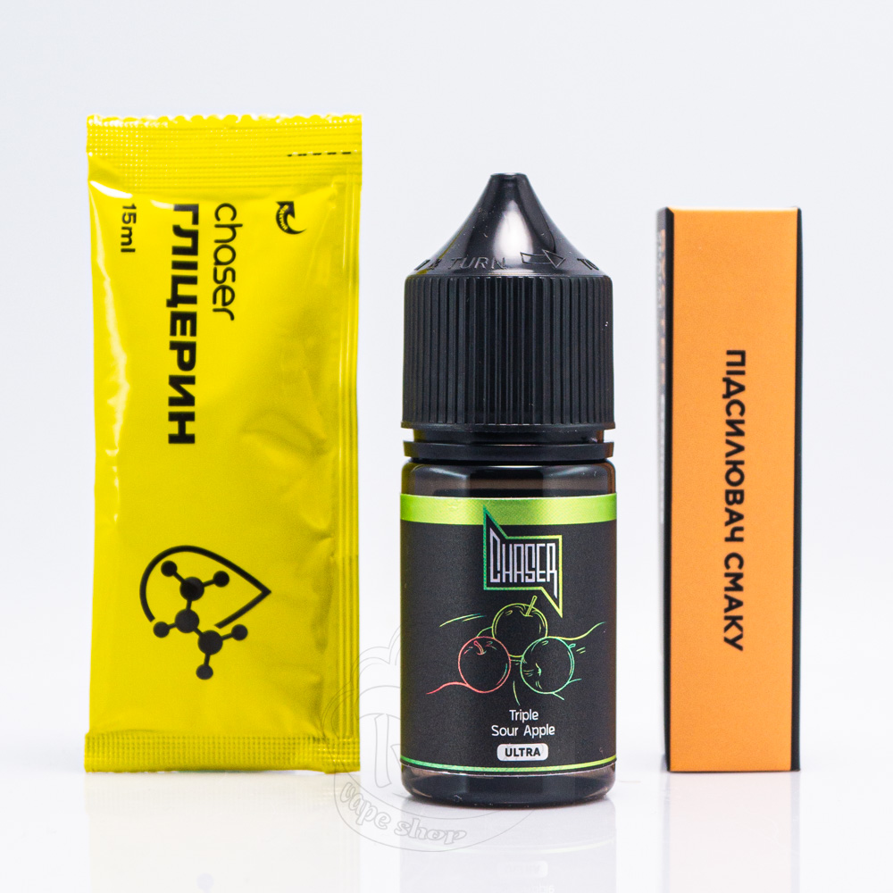 Chaser Black Ultra Salt Triple Sour Apple 30ml 50mg - сольова рідина для електронних сигарет зі смаком поєднання трьох сортів яблук з характерною кислинкою.