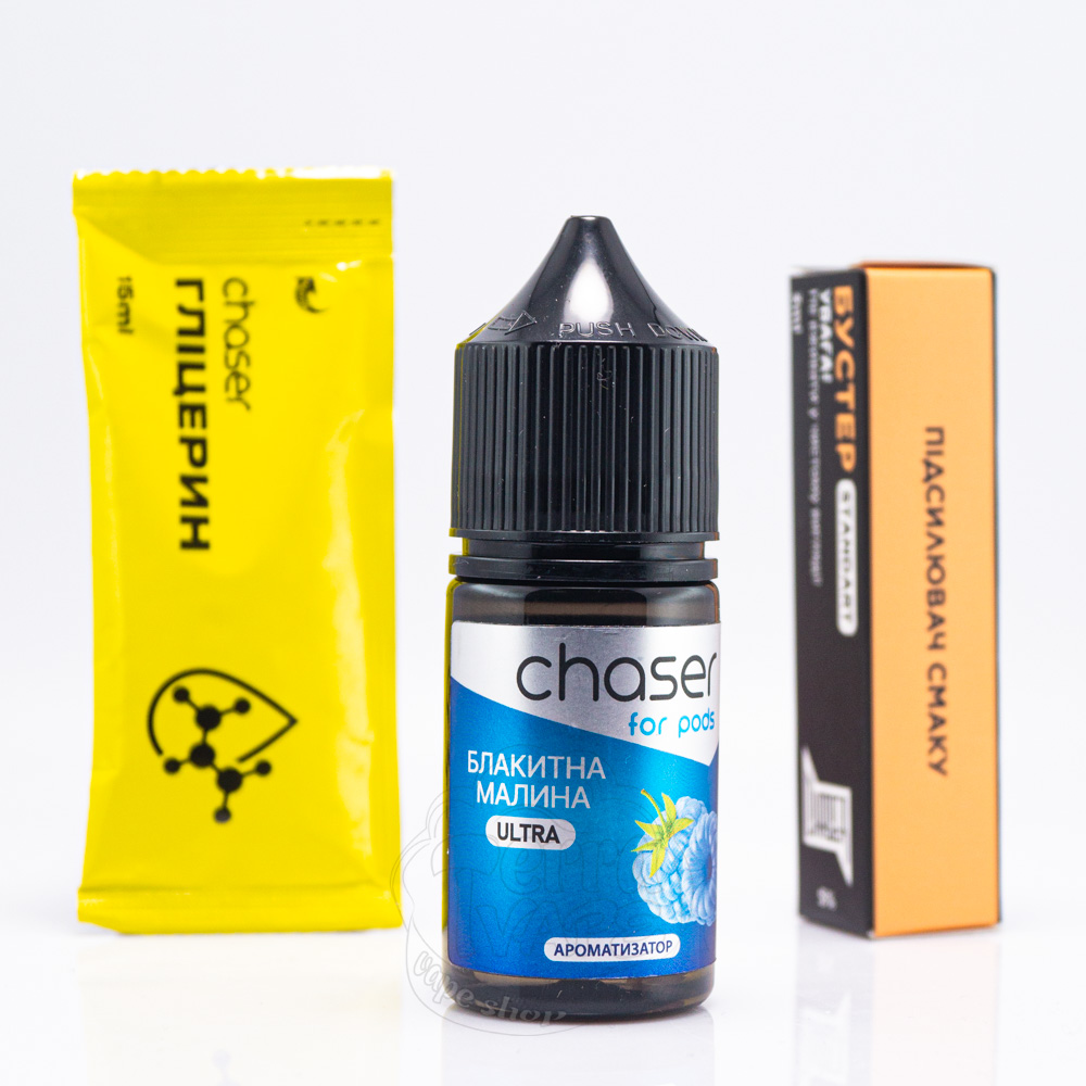 Chaser For Pods Ultra Salt – це набори для самостійного приготування жижі українського виробництва компанії Chaser. Фінальний об'єм після змішування буде складати 30мл. Співвідношення PG/VG – 50/50. Міцність регульована на етапі змішування і може бути будь-якою, залежно від потреби користувача, але виробник пропонує дві опції - 50мг/мл або 65мг/мл.