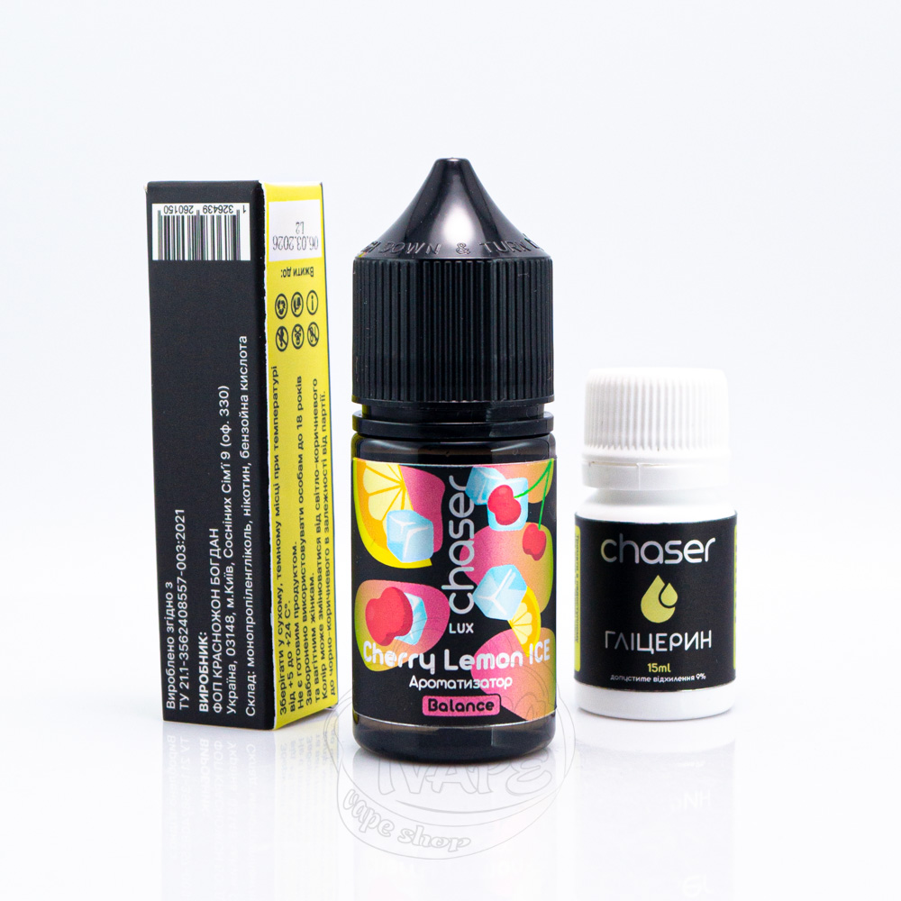 Chaser Lux ICE Salt Cherry Lemon ICE 30ml 50mg - это солевой набор для приготовления жидкости со вкусом сочной, спелой вишни в невероятном сочетании с кисленьким лимоном, который подчеркивает глубокий аромат ягоды и делает этот дуэт приятно сбалансированным, особенно с ощутимым холодком в послевкусии.