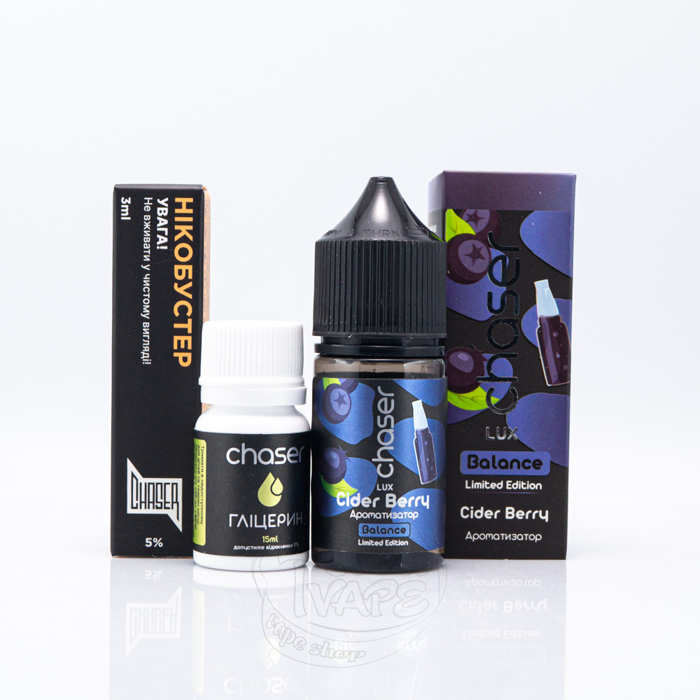 Chaser Lux Salt Cider Berry 30ml 50mg - це набір сольової рідини для pod-систем з освіжаючим смаком ягідного сидру.