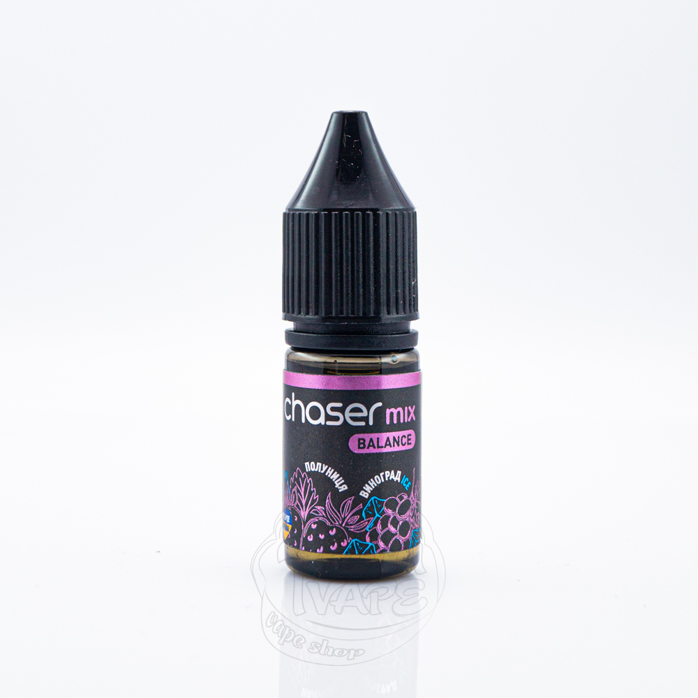 Chaser Mix Plus Salt Клубника виноград ICE 10ml 30mg - это жидкость на солевом никотине для электронных сигарет со вкусом яркого сочетания сладкого винограда и спелой клубники с холодком.