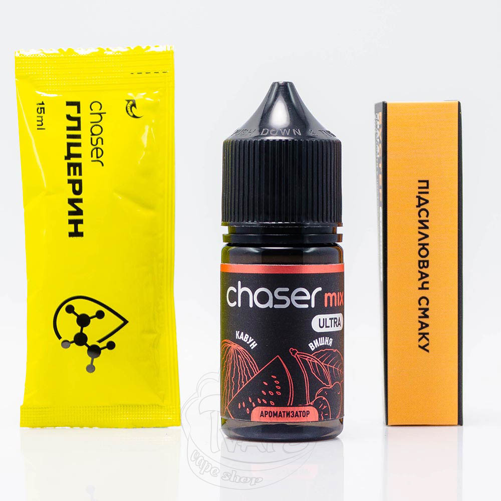 Chaser Mix Ultra Salt Кавун Вишня 30ml 65mg - це набір для самостійного приготування рідини зі смаком кавуна та вишні.