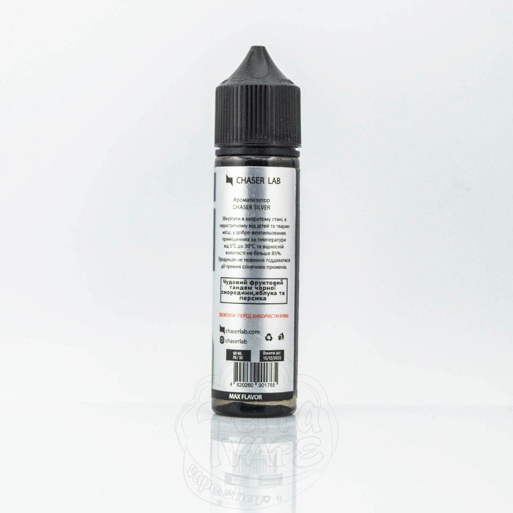 Chaser Silver Organic Kreon X 60ml 3mg - рідина для електронних сигарет зі смаком незвичайного поєднання зеленого яблука, персика і смородини вразить ваші рецептори багатогранністю смаку.
