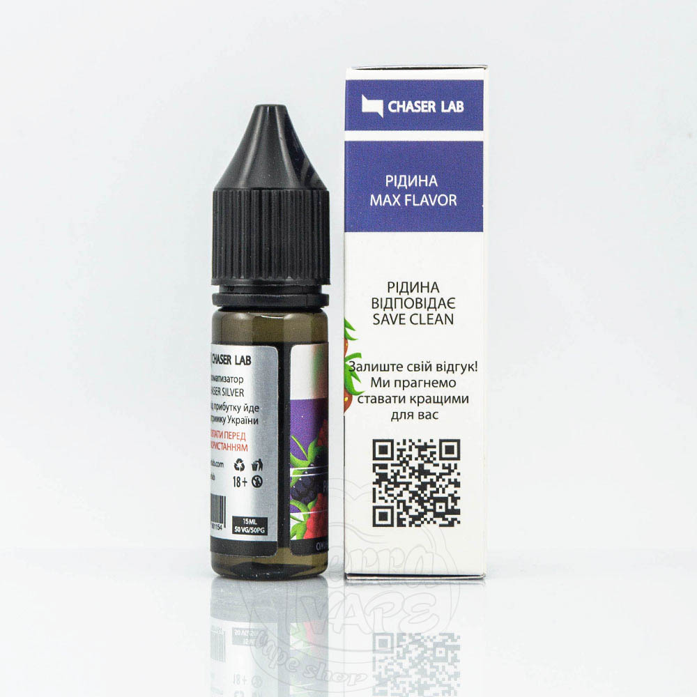 Chaser Silver Salt Pamberry X 15ml 50mg - рідина для електронних сигарет на сольовому нікотині зі смаком кисло-солодкого міксу лісових ягід малини та ожини зі стиглою полуницею.