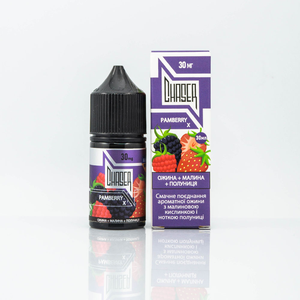 Chaser Silver Salt Pamberry X 30ml 30mg - рідина для електронних сигарет на сольовому нікотині зі смаком ягідного поєднання малини та ожини з приємною полуничною солодкістю.