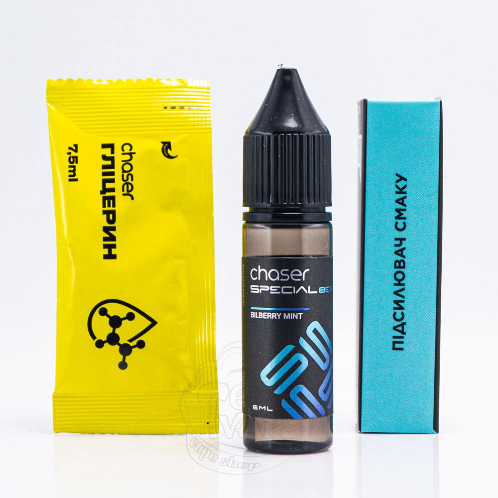 Chaser Special Berry Salt Bilberry Mint 15ml 50mg - это набор для самостоятельного замешивания жидкости со вкусом спелой черники и приятной мятной свежестью.