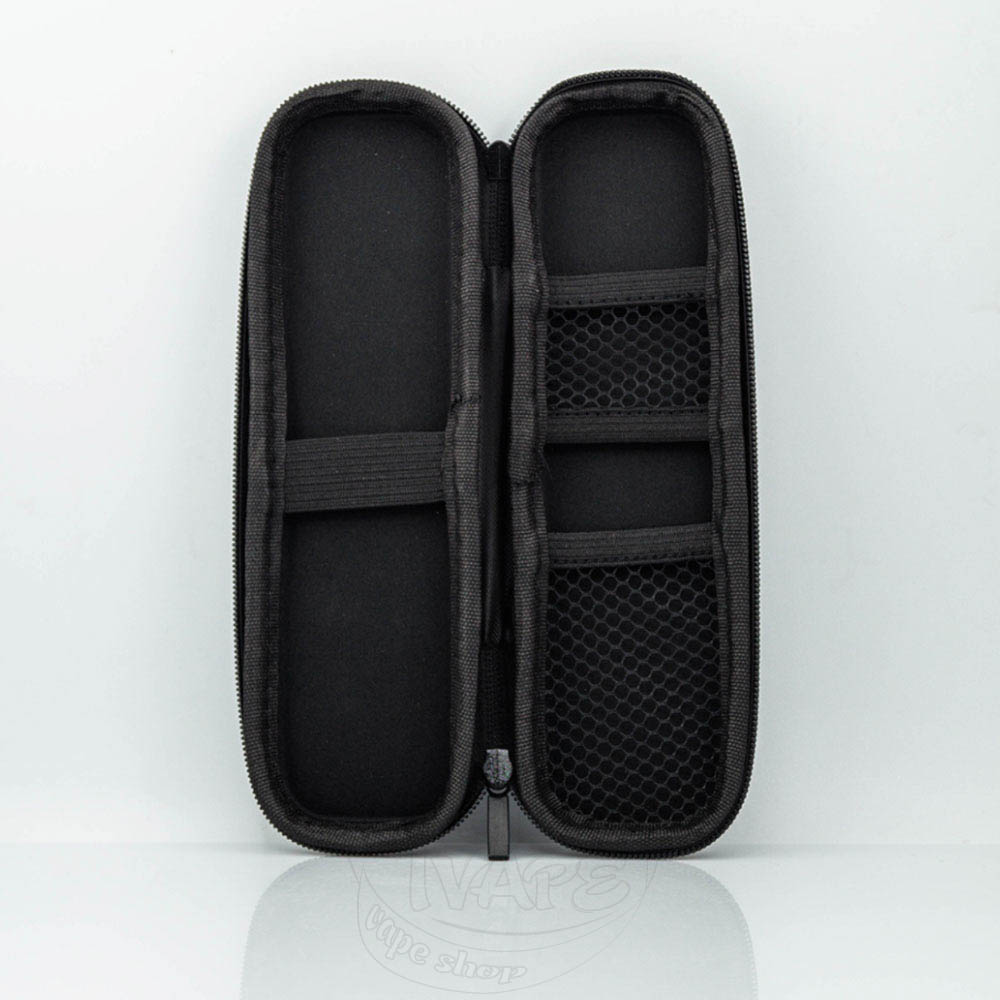 Внутрішня частина футляра викладена м'яким матеріалом, що запобігає подряпинам і пошкодженням вашої електронної сигарети. У ньому є спеціальні слоти-гумки для фіксації девайса і невелика сітчаста кишеня для зберігання картриджів або інших дрібних витратних матеріалів.