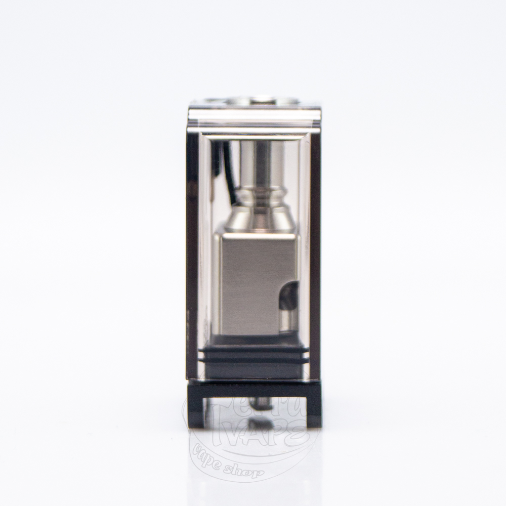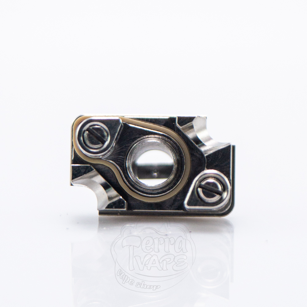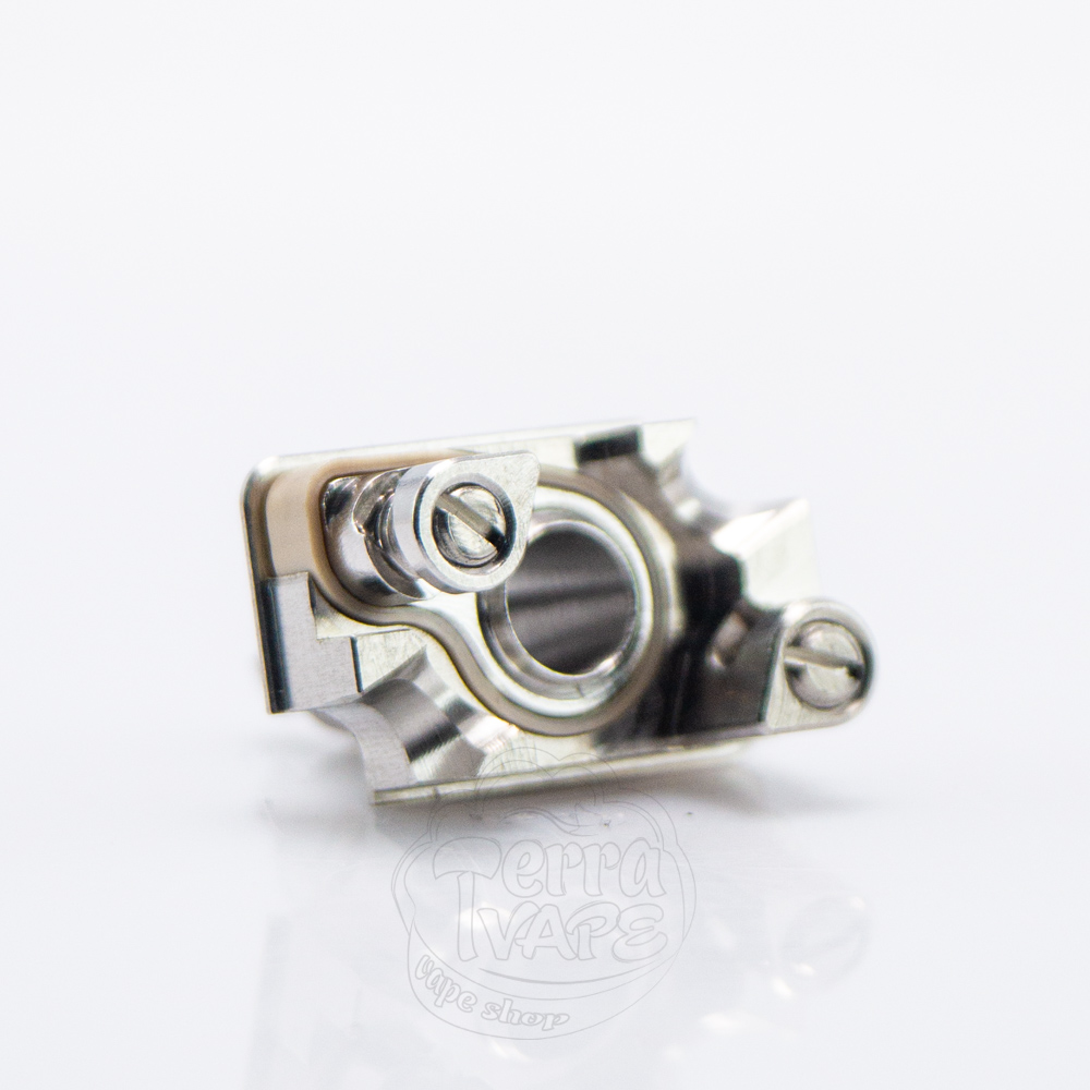 Сам принцип установки спіралі не змінився, але дека отримала деякі покращення, як і властиво старшій версії. По діагоналі так само розмістилися дві стойки з гвинтами для надійної фіксації нагрівального елементу. З кожної сторони поруч знаходяться вирізи для подачі рідини. Вони являють собою повноцінні виїмки на кутах, які не мають дна. Завдяки такому рішенню жижа більш рівномірно зможе підтягуватися до спіралі, забезпечуючи більш стабільний та насичений смак.