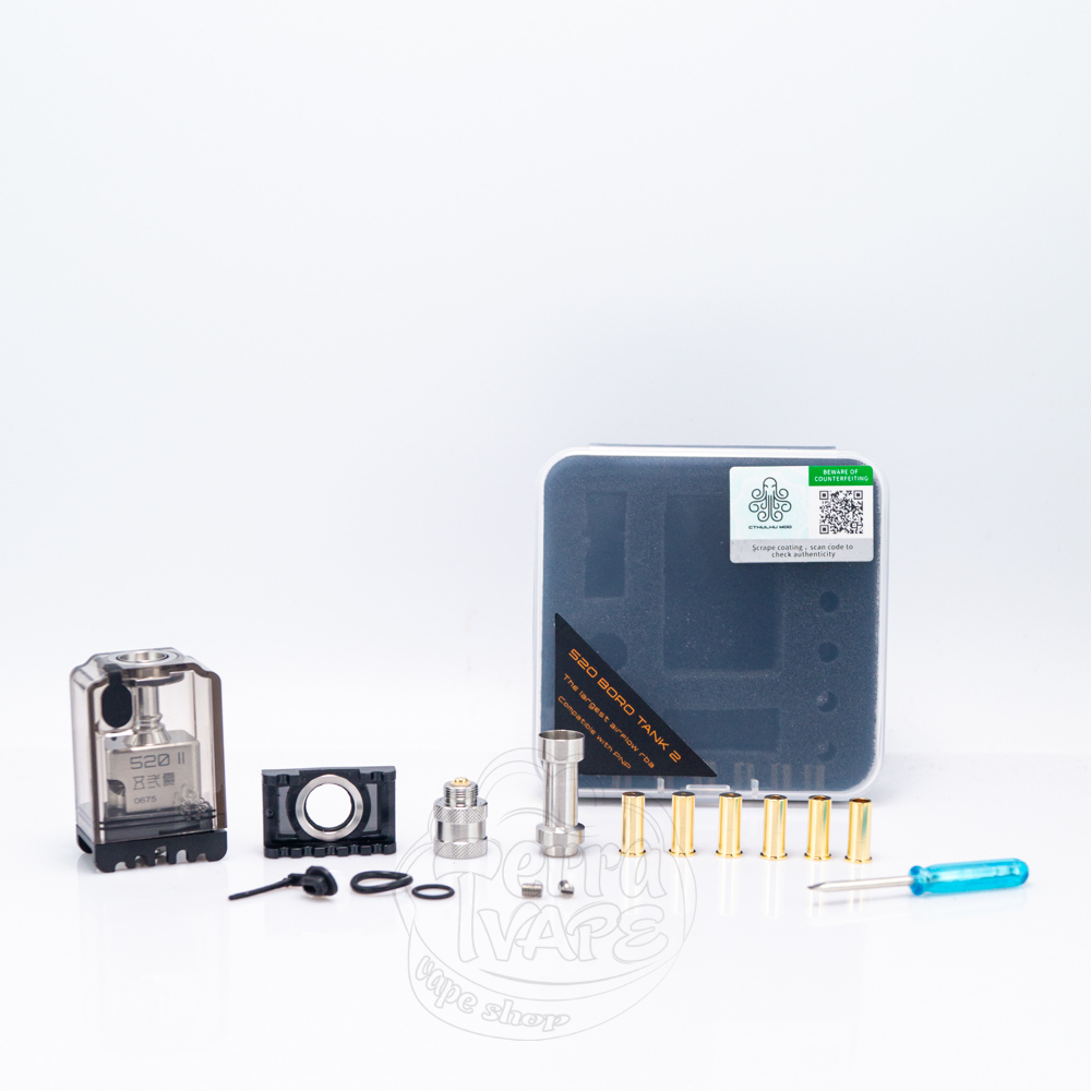 Cthulhu 520 Boro Tank v2 - це друга версія обслуговуваного бака формату boro, який представила компанія Cthulhu. На відміну від першого 520 Tank, дана модель розрахована на DL та RDL вейпінг. Пластиковий резервуар має об'єм 4.2мл, а головна особливість танка полягає у можливості вибору складності обслуговування. Ви можете створити власну намотку з однією спіраллю, що дозволяє вам точно налаштувати процес паріння під ваші особисті уподобання.