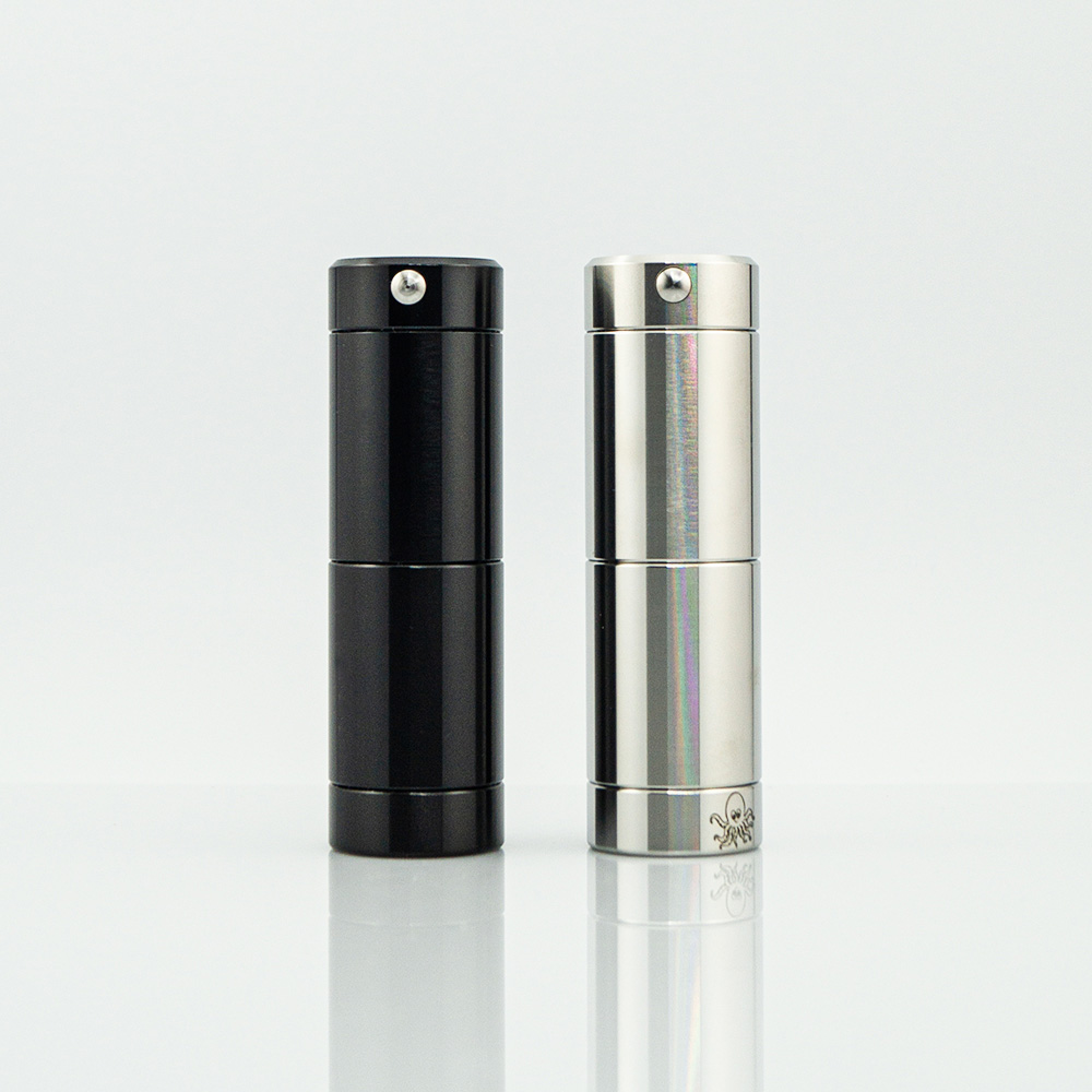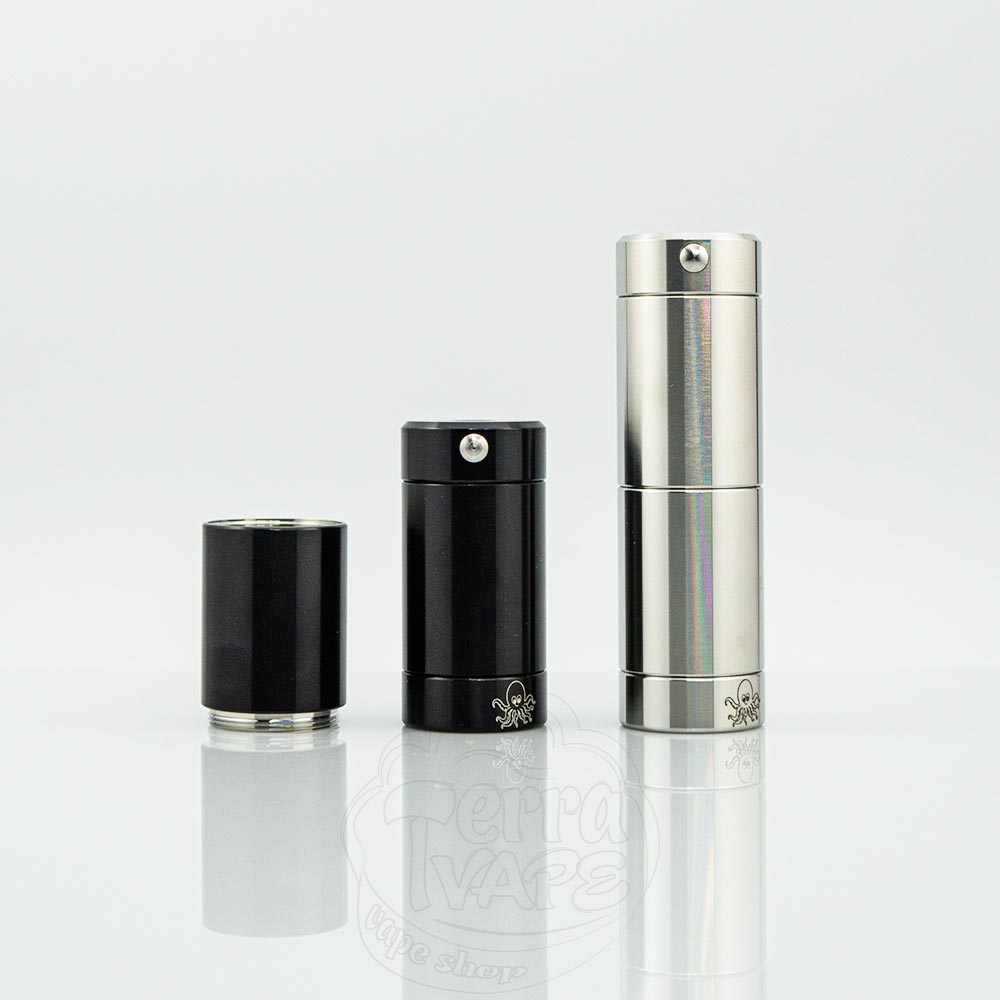 Мод виконаний з нержавіючої сталі має форму труби з діаметром 24мм та висотою 80мм (або 50мм при використанні акумулятора 18350). Випускається у двох кольорах.