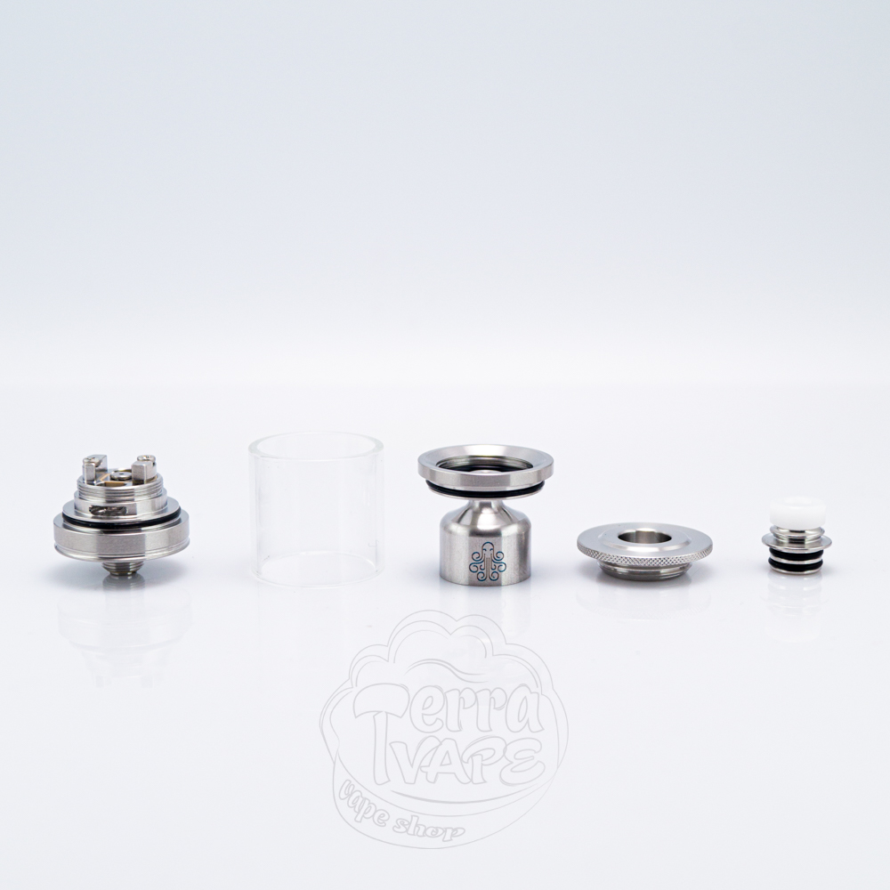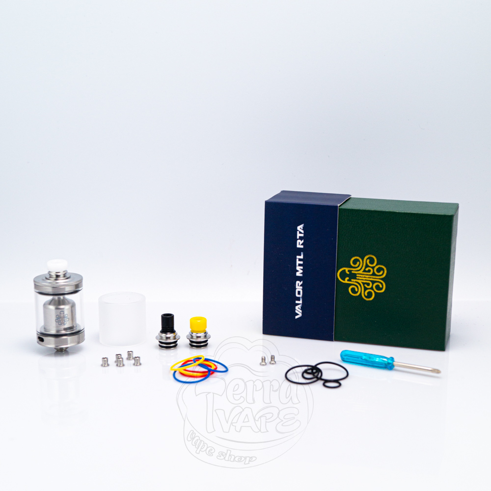 Valor має доволі невеликі розміри, які становлять всього 30мм в висоту (без мундштука) та 22мм в діаметрі. Дизайн атомайзера дуже лаконічний, але при цьому елегантний та приємний. Виробник випустив бак у двох кольорах: класичному сталевому або чорному. Вгорі розташований 510 дріп-тип, який можна зняти та встановити замість нього як один з комплектних мундштуків, так і будь-який інший. Говорячи про дріп-типи, які Cthulhu кладуть до набору, ви отримуєте три різних за висотою та кольором варіанти (один з яких буде попередньо встановленим). Також у вас будуть кольорові о-рінги, які ви можете комбінувати, щоб ще більше підкреслити індивідуальний зовнішній вигляд свого RTA.