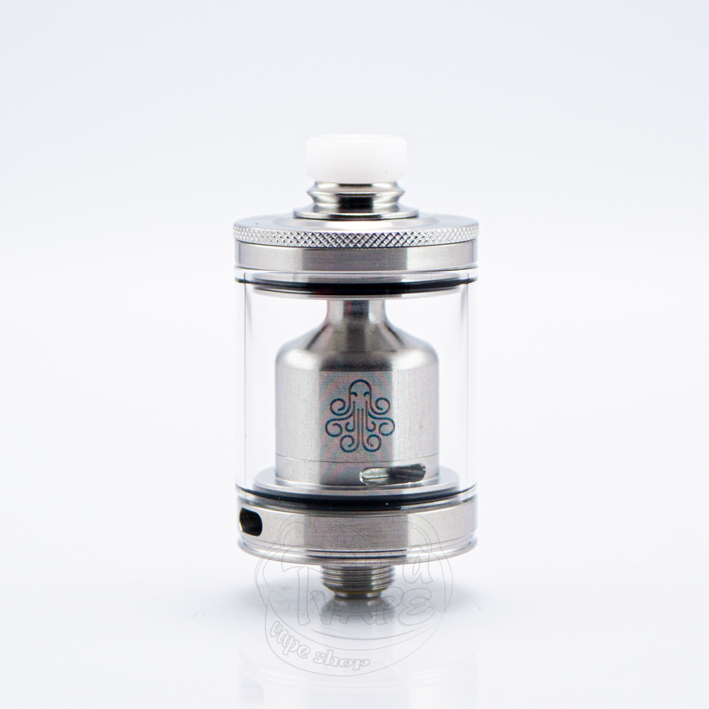 Як і в більшості випадків, на топ-кепі є накатка, а сама кришка зручно відкручується. Окрім встановленого прозорого скла, до комплектації також входить запасне матоване скло, яке при встановленні придасть баку зовсім іншого вигляду. На куполі розміщене гравіювання з логотипом компанії у вигляді фірмового восьминога.
