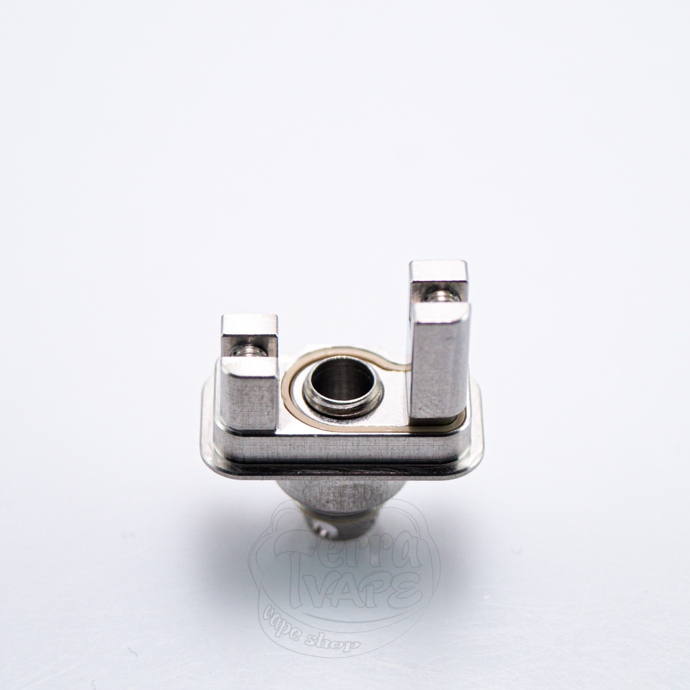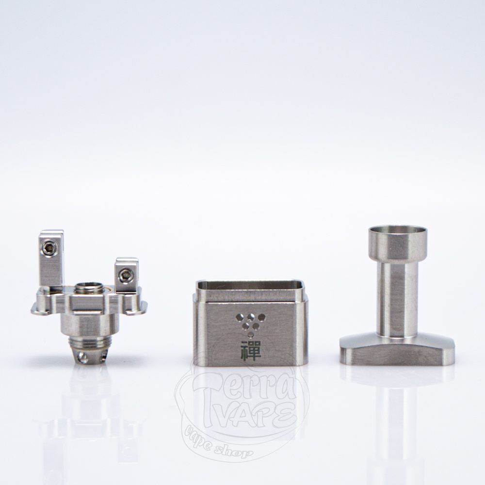 Знявши купол з Zen RBA, ви побачите деку з двома стойками, розташованими на різному рівні навпроти одна одної. Кожен зі стовпців має вгорі гвинт, який слугуватиме фіксатором для майбутнього білда. Оскільки база передбачає вертикальне розміщення спіралі, довжина стойок суттєво різниться. Це обумовлено тим, що ніжки спіралі будуть знаходитися на різній висоті, що дозволяє виконати обслуговування відповідно до вимог конструкції.
