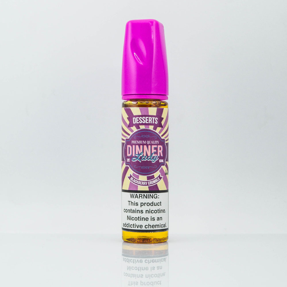 Dinner Lady Organic Blackberry Crumble 60ml 3mg - це десертна суміш, в якій присутні терпкі нотки. На вдиху розкривається багатий смак коржового тіста з нотками вершкового масла. Навпаки, соковитий смак ожини з терпким післясмаком.