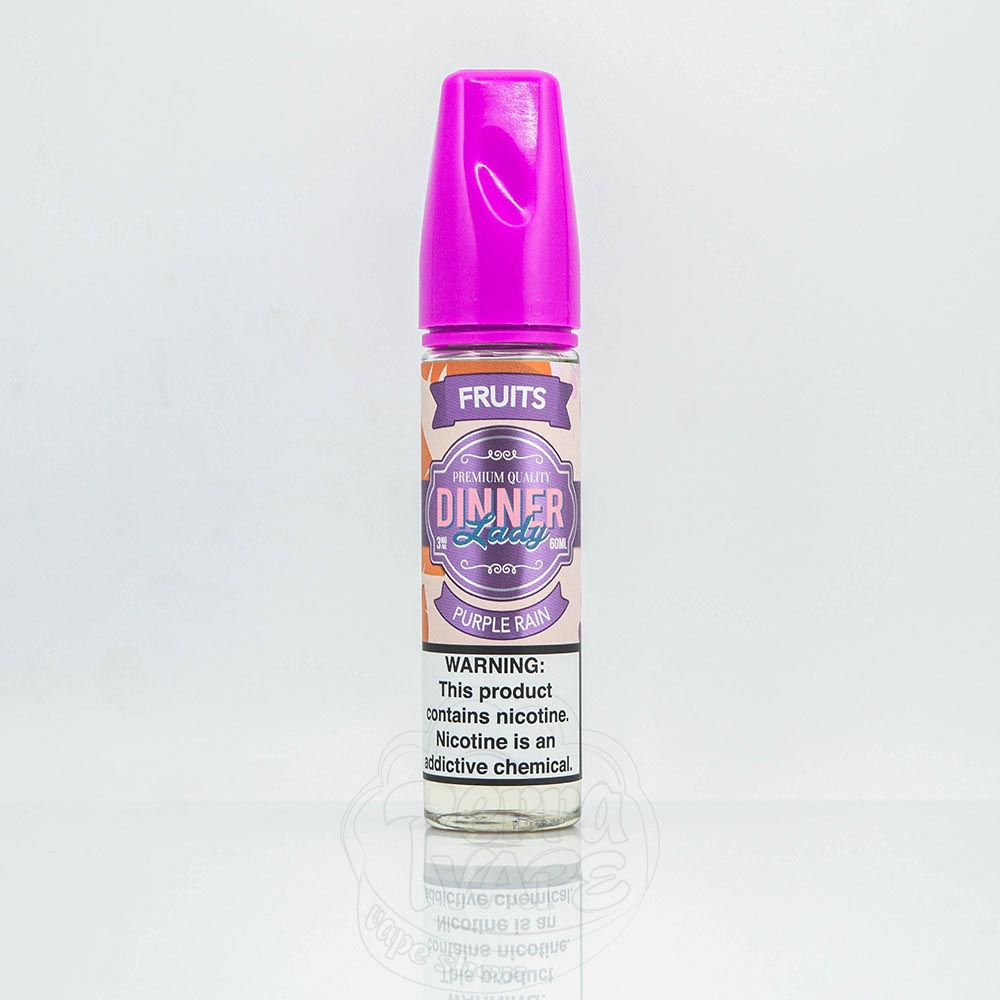 Dinner Lady Organic Purple Rain 60ml 3mg - запрошує танцювати під пурпуровим дощем! Прекрасні краплі малини, чорниці та нотки лимонної цедри роблять цю фруктову рідину незабутньою!