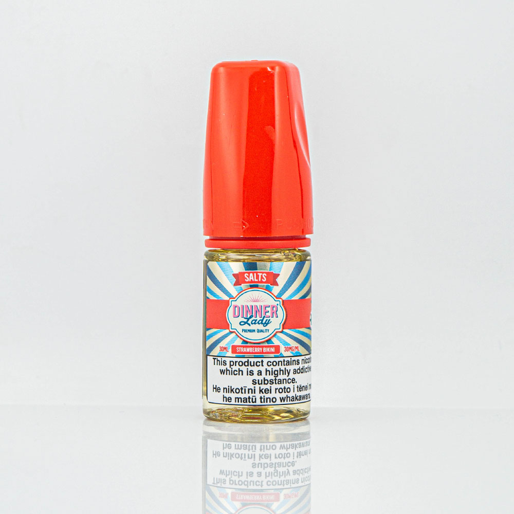 Dinner Lady Salt Strawberry Bikini 30ml 30mg - прохолодний і сміливий полуничний смак, що нагадує келих свіжовичавленого лимонаду з лаймом та пюре полуниці. Відчуйте себе біля басейну в п'ятизірковому готелі, роблячи затяжку за затяжкою.