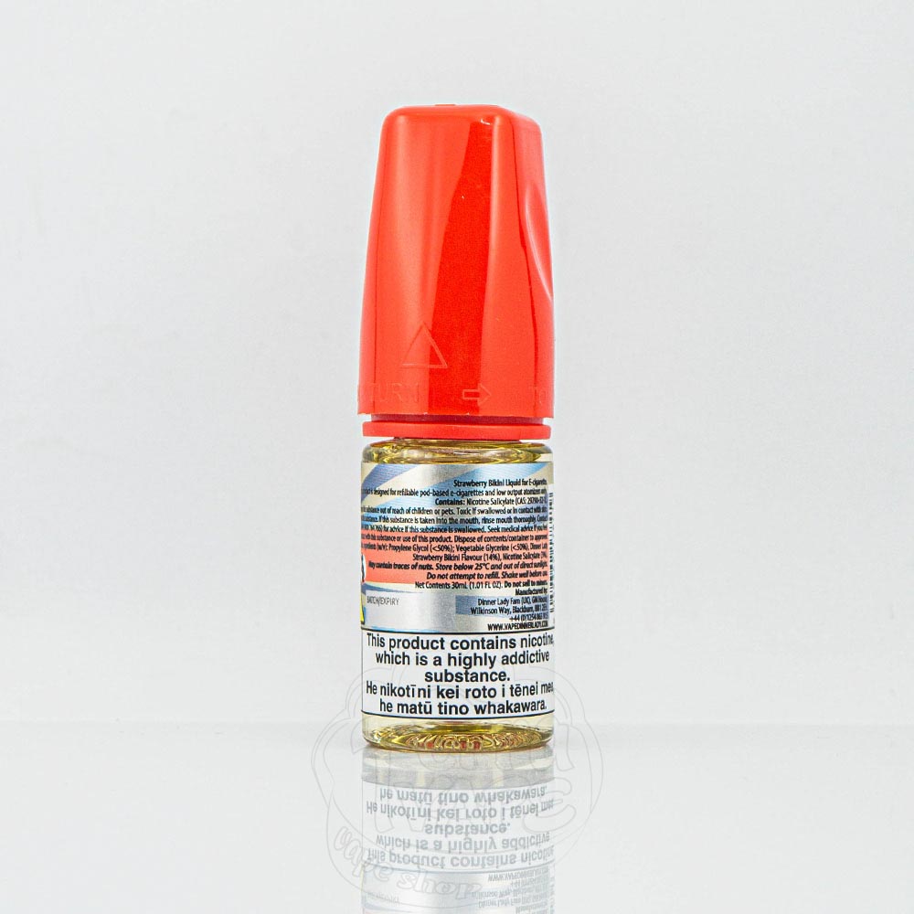 Dinner Lady Salt Strawberry Bikini 30ml 50mg - прохолодний і сміливий полуничний смак, що нагадує келих свіжовичавленого лимонаду з кубиками льоду з пюре полуниці. Відчуйте себе біля басейну в п'ятизірковому готелі, роблячи затяжку за затяжкою.