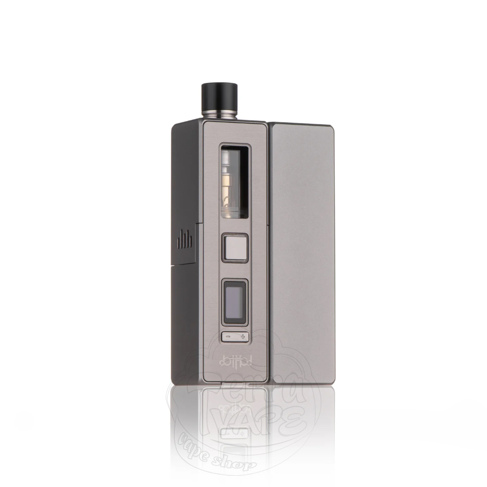 Корпус выполнен из алюминия (легкого, но прочного материала) и имеет привычную для формата AIO прямоугольную форму с острыми гранями и прямыми углами, что придает девайсу минималистичный и аккуратный вид. Дизайн девайса от Дотмода как всегда радует глаза своей сдержанностью, не перегружая девайс излишком декорирования и брендирования. На лицевой стороне девайса находится кнопка Fire, имеющая квадратную форму, дисплей и кнопки управления.