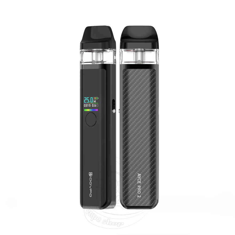 Dovpo Ayce Pro 2 Pod System Kit 1000mAh Black Carbon - це нова багаторазова под-система чорного кольору від виробника Dovpo. Пристрій живиться від вбудованого акумулятора місткістю 1000мАг та забезпечує вихідну потужність у діапазоні 5-30W. Оснащена зручним кольоровим дисплеєм та кнопкою Fire, за допомогою якої можна не тільки активувати затяжку, а й налаштувати потужність та змінити колір RGB-стрічки під екраном. Активація можлива як від кнопки, так і від затяжки.