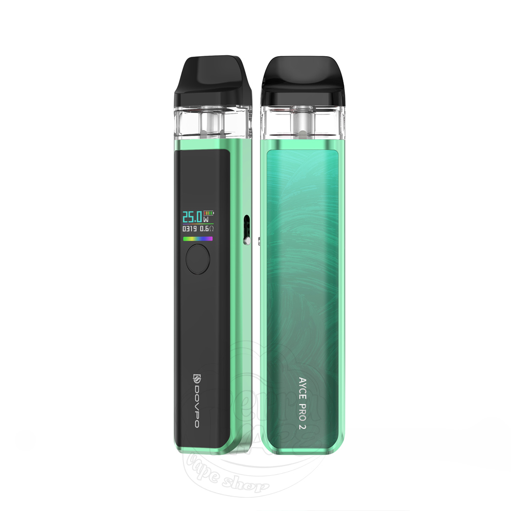 Dovpo Ayce Pro 2 Pod System Kit 1000mAh Lemon Green - це нова багаторазова под-система зеленого кольору від виробника Dovpo. Пристрій живиться від вбудованого акумулятора місткістю 1000мАг та забезпечує вихідну потужність у діапазоні 5-30W. Оснащена зручним кольоровим дисплеєм та кнопкою Fire, за допомогою якої можна не тільки активувати затяжку, а й налаштувати потужність та змінити колір RGB-стрічки під екраном. Активація можлива як від кнопки, так і від затяжки.