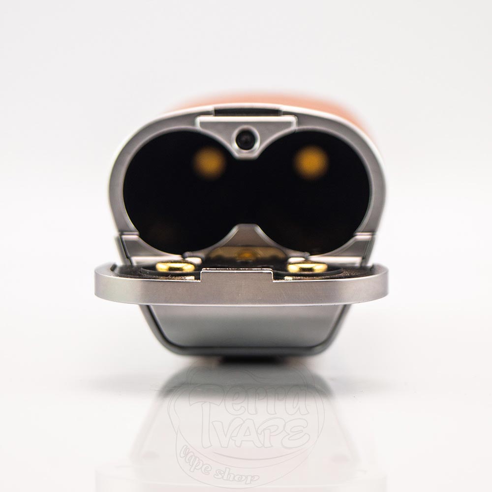 Батарейний відсік знаходиться в нижній частині бокс-мода, а доступ до нього відкривається через відкидні дверцята. Вони відчуваються дуже міцними, а на внутрішній стороні чітко позначена полярність.