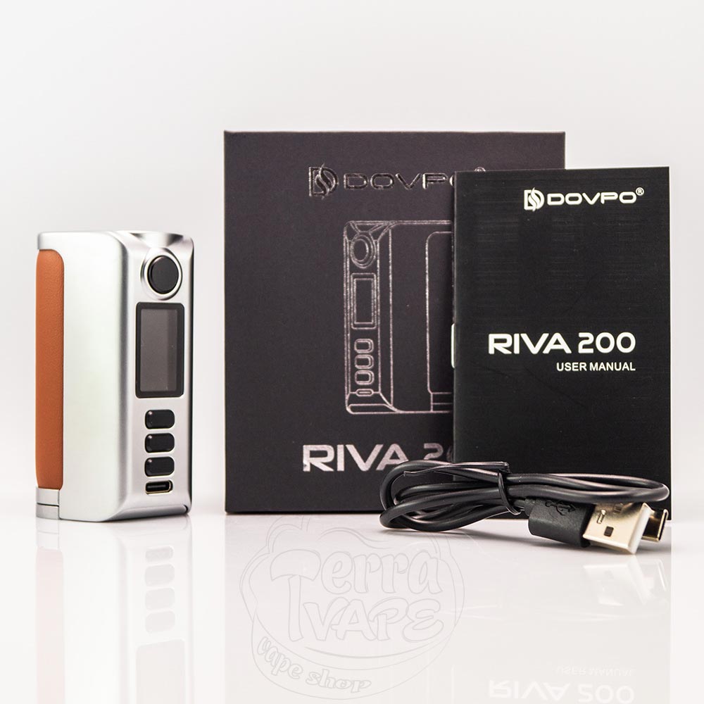 Dovpo Riva 200 Box Mod - це бокс мод на два акумулятори формату 18650 від компанії Dovpo. Діапазон потужності складає 5-200W. Посадковий майданчик здатен вмістити атомайзер діаметром до 26мм. Підтримує мінімальний опір 0.08Ом. Має просте керування та містить всі необхідні режими роботи.