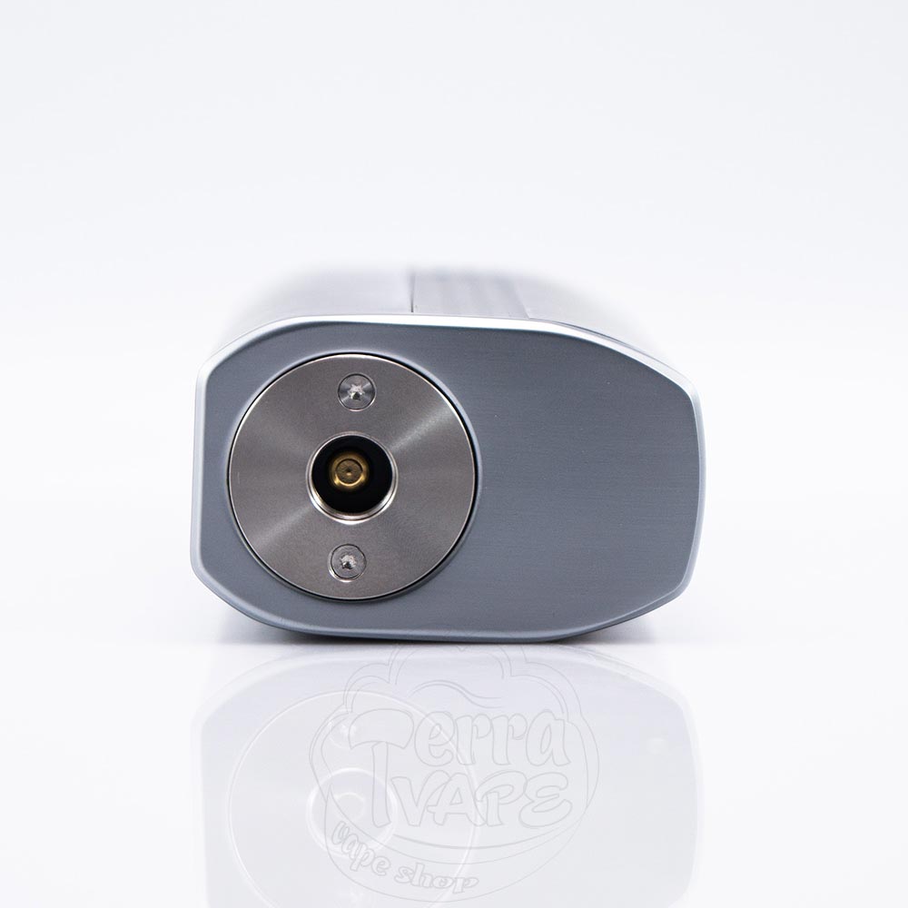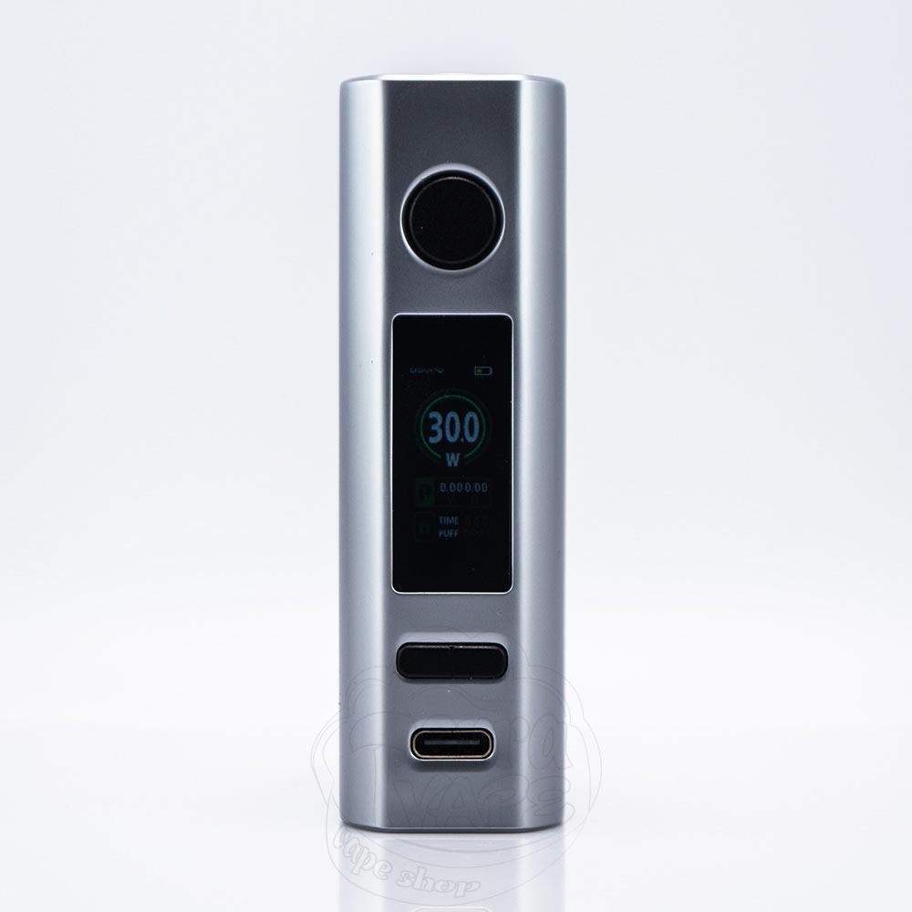 Панель управління не захаращена пластиковими кнопками, всі вони гармонійно вписуються та ніяк не псують загальний зовнішній вигляд девайса. Кнопки трохи виступають з основного корпусу та передають приємні тактильні відчуття з клацанням. Між ними розташувався яскравий 0.96-дюймовий кольоровий екран, на якому ви зможете відслідковувати всю інформацію, необхідну під час користування. Як і в багатьох бокс-модах з одним акумулятором, зарядний порт Type-C розміщено в нижній частині корпусу. Єдине брендування, яке ви зможете побачити - це назва компанії виробника на дні основи. Вгорі знаходиться 510 коннектор, який трохи зміщений до передньої частини. Ви можете накрутити на нього атомайзери діаметром до 26мм без нависання.