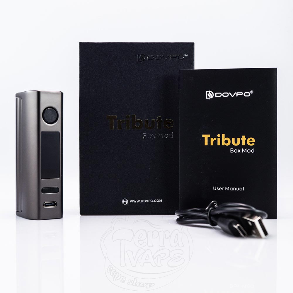 Dovpo Tribute Box Mod - це одноакумуляторний бокс-мод від виробництва компанії Dovpo. Він здатен працювати як від батареї 21700, так і 18650. Посадковий майданчик вміщує атомайзери діаметром до 26мм. Максимальна вихідна потужність пристрою - 100W. Має кольоровий 0.96-дюймовий екран, який дозволить комфортне керування.