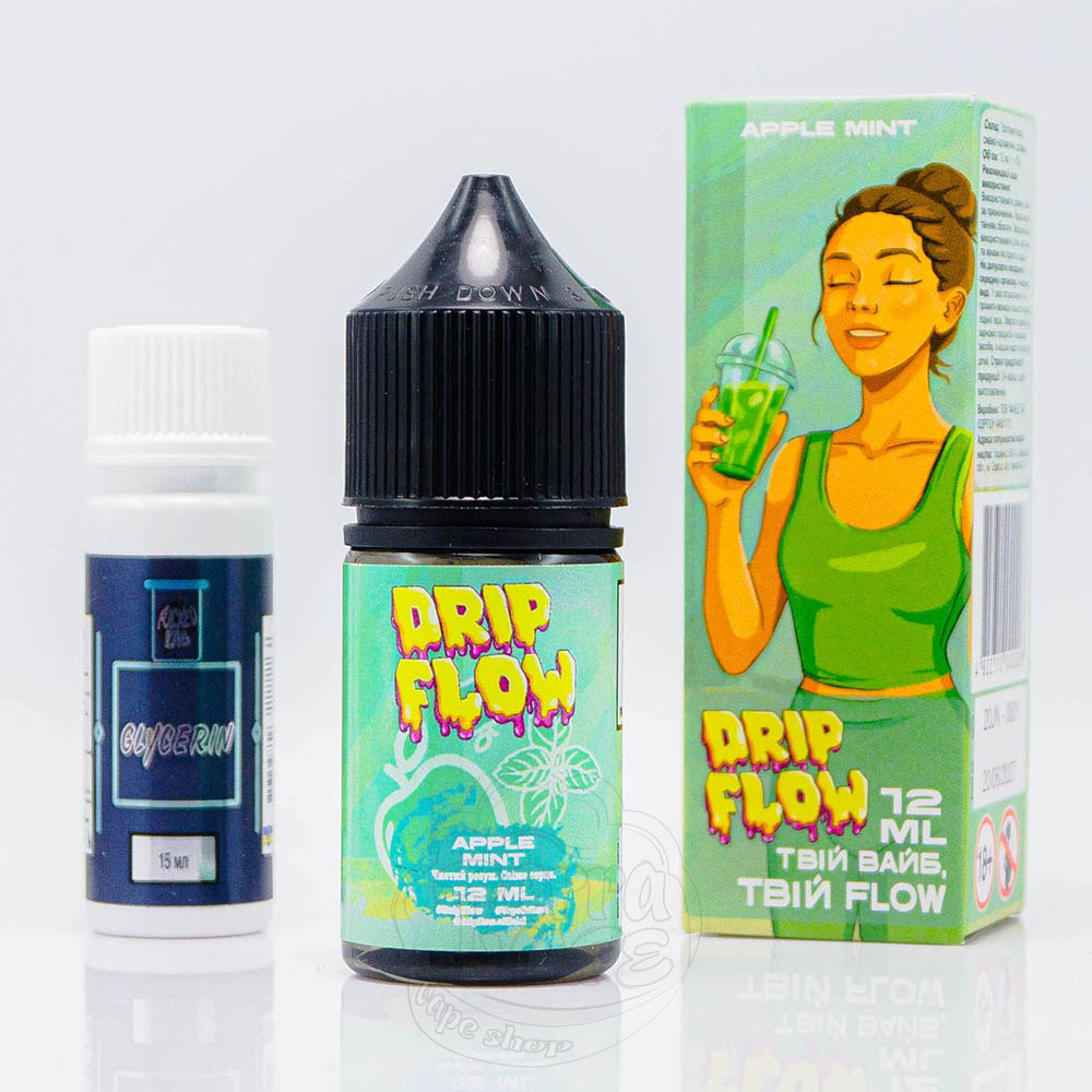 Drip Flow Salt Apple Mint 30ml 50mg - це набір для замішування жижки зі смаком зеленого яблука та м'яти, які разом створюють освіжаючий кислий мікс.