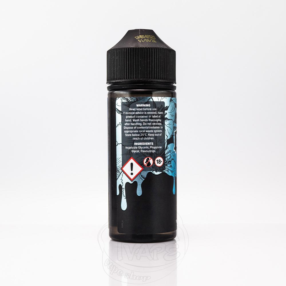 Соотношение VG/PG составляет 70/30, поэтому жидкость идеально подходит для использования под кальянную затяжку с большим количеством пара. Поставляется в пластиковых флаконах объемом 120мл, но жидкости внутри заполнено только 100мл. Пустое место остается для того, чтобы вы могли добавлять никотин до нужного уровня. По стандарту в баночке содержится жидкость крепостью 0мг/мл. Выбирая крепость 1.5 мг/мл или 3 мг/мл, вы получаете в комплекте никотиновый бустер, который нужно будет залить внутрь.